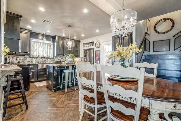 The property offers a relaxing, family-friendly atmosphere (tenants thoroughly vetted) & includes a stocked fishing pond, fire pit, gazebo, playground, even an island with a large swing-bed. This historic 3 acre land run property with farmhouse, originally established in 1907, was gutted and lovingly rebuilt in 2016 after extensive storm damage in 2013. With no expense spared & keen attention to detail, the current owner wove style and elegance into every detail of the home--a true work of art--even designing the large metal doors herself & commissioning them from Mexico.