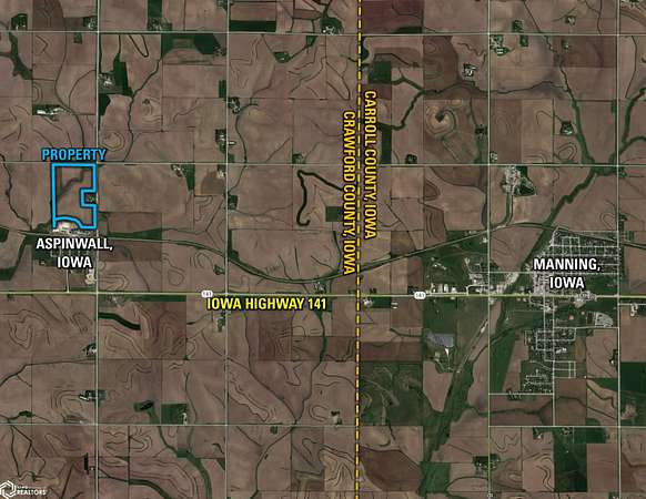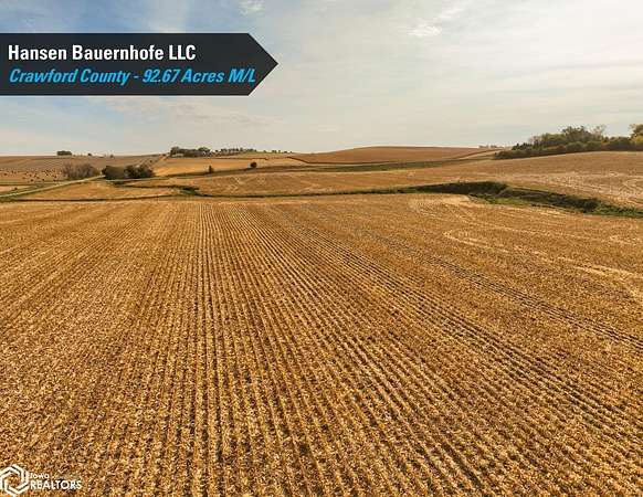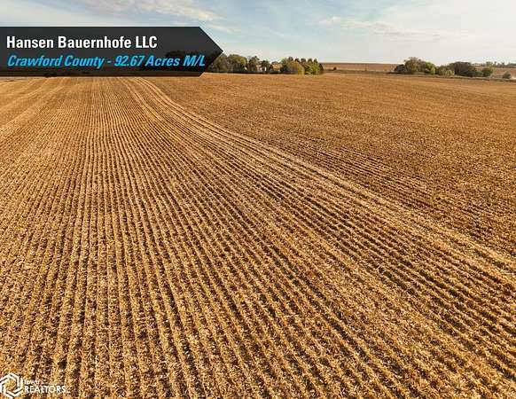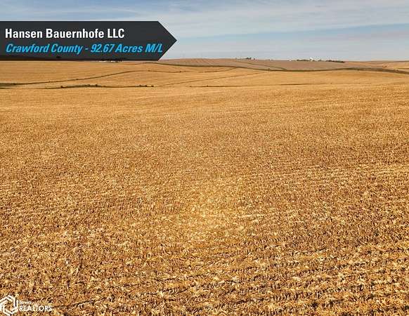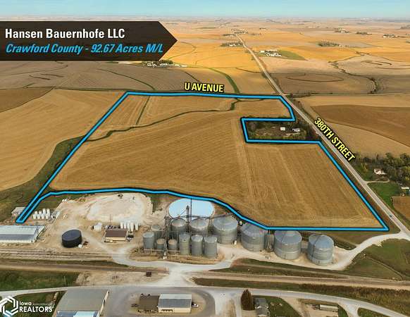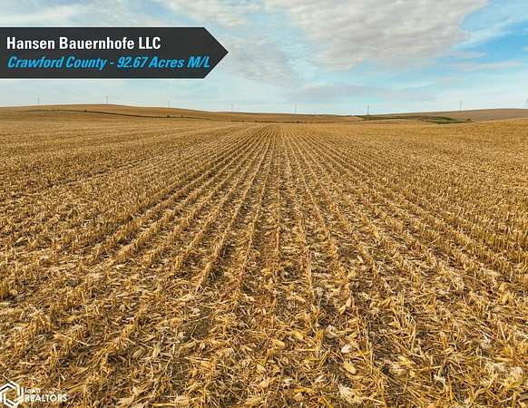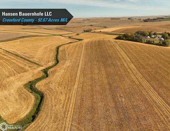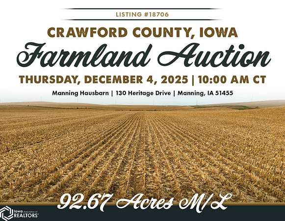Crawford County, Iowa Farmland Auction - Mark your calendars for Thursday, December 4th, 2025! Representing Hansen Bauernhofe LLC in the sale of their Crawford County farm located just north of Aspinwall, Iowa, and west of Manning, Iowa. The property consists of 92.67 acres m/l and is situated in Section 15 of Iowa Township, Crawford County, Iowa. Offered as one tract, the farm includes 86.42 FSA cropland acres and a CSR2 soil rating of 71.2. Prominent soil types include Zook silt loam, Exira silty clay loam, and Judson silty clay loam. Of the cropland acres, 27.26 acres are considered Non-Highly Erodible Land (NHEL), and the remaining 59.16 acres are considered to be Highly Erodible Land (HEL). The balance of the tract consists of an open ditch running through the property. Access is from both U Avenue and 380th Street, and the farm sits just half a mile off Iowa Highway 141, offering quick access to the Iowa Highway system. Grain marketing options are located nearby with the Aspinwall Cooperative Co., just south of the property in Aspinwall, Iowa, and Ag Processing Inc., a few miles east in Manning, Iowa. The farm lease has been terminated, and farming rights are available for the 2026 growing season. Don't miss this opportunity to own land in a tightly held area where land rarely makes it to the open market!