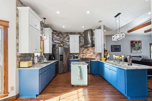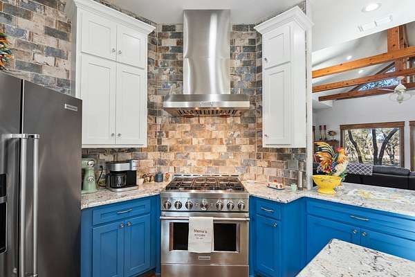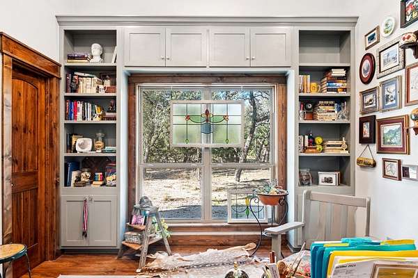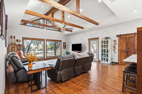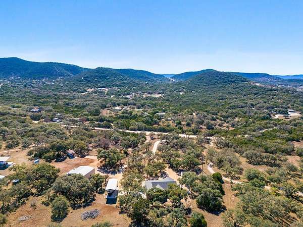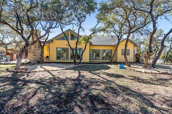 Built in 2022, this thoughtfully designed residence is nestled among beautiful live oaks on a 2.6 ac., perimeter fenced lot with no HOA and a few minimal restrictions, providing both privacy and freedom. Step inside and notice the vaulted ceilings and three 6x6 picture windows that invite natural light and showcase the scenic views. Discover high-quality finishes throughout including granite tops and wood & tile flooring. The kitchen features KitchenAid appliances including a 6-burner gas range, custom cabinetry, and a spacious utility/pantry/office area. The primary suite has 2 picture windows, double vanities and his/her closets. Outdoor living is enhanced by beautiful patios, a wood burning fireplace, covered RV parking with hookups, and a detached garage plus 2 outdoor showers. Copper wiring, foam insulation, and a tankless water heater are notable features. Frio River access is nearby. Don't miss this opportunity to own a modern, high-quality home in the heart of the Texas Hill Country! Possibility of additional acreage!!!