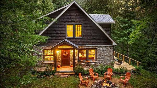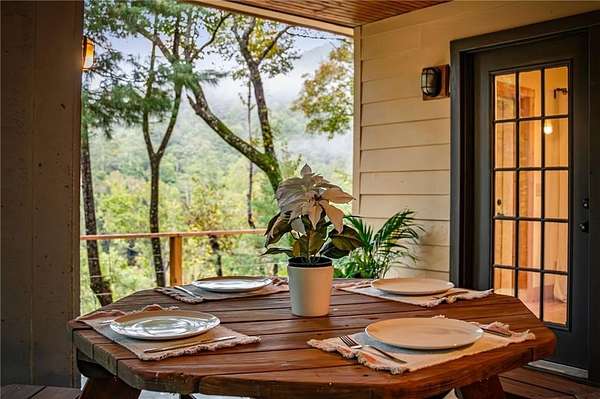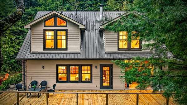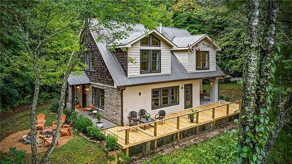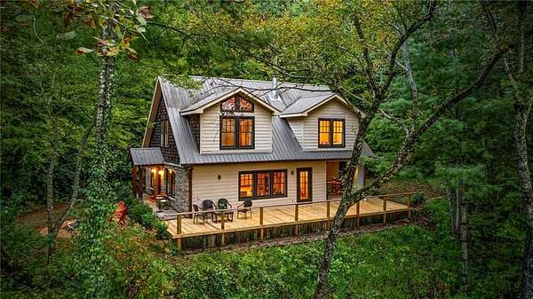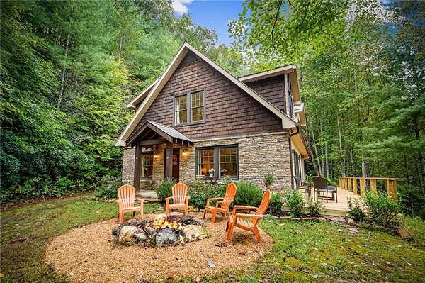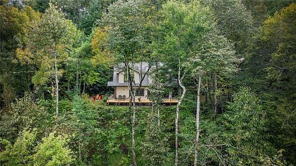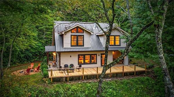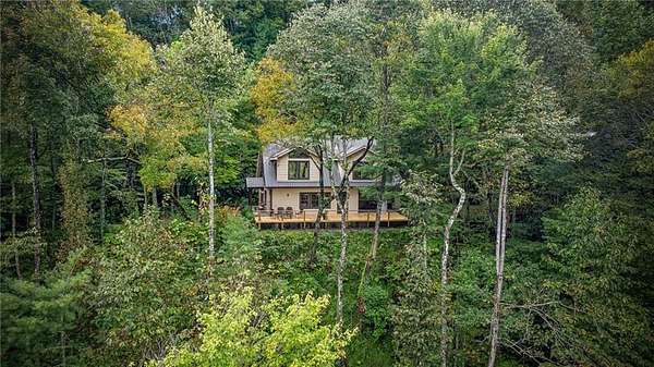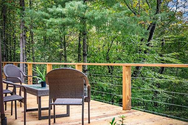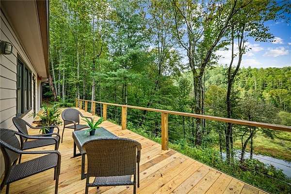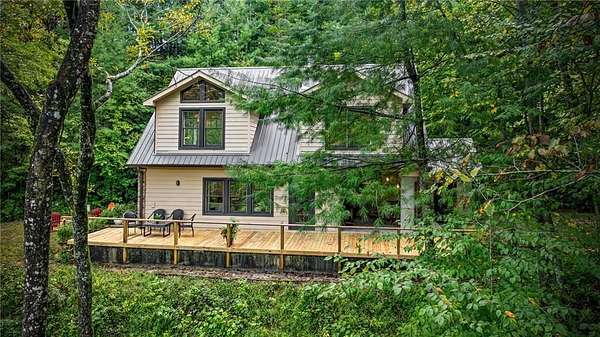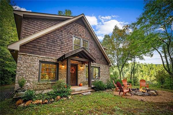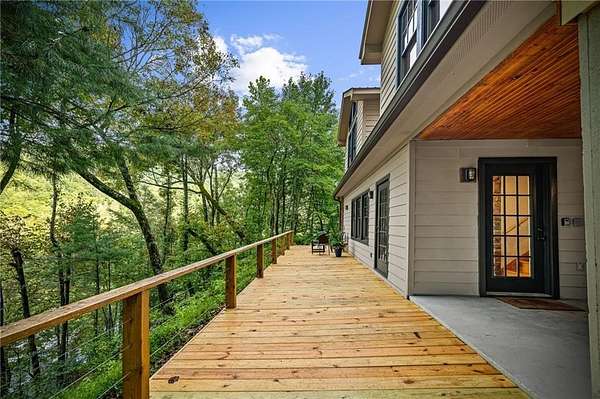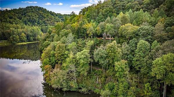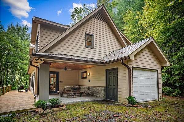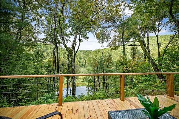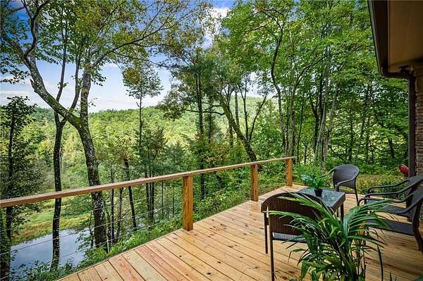 Experience the Ultimate Mountain & Lake Retreat in the Cohutta Wilderness. Perched on 4.6 acres adjoining Hills Lake and more than 20,000 acres of National Forest, this 3BR/2.5BA mountain retreat offers rare privacy, sweeping year-round lake and mountain views, and direct access to some of North Georgia's most iconic hiking and biking trails. A brand-new porch invites you to relax and soak in ever-changing scenery. Inside, European-inspired styling blends seamlessly with rustic mountain charm, all supported by high-speed fiber network for modern convenience. The open-concept main level features a spacious kitchen, dining area, and a stunning wood-burning stone fireplace-perfect for cozy evenings after days of adventure. A convenient half bath, already stubbed for a full, and an adjoining covered porch create the potential for a future main-level primary suite, adding even more versatility to the floor plan. Upstairs, the primary suite is a private haven with a vaulted beadboard ceiling, peaceful sitting area, and spa-like bath with a soaking tub and separate shower. This private suite also captures sweeping mountain views and overlooks the lake. Two guest bedrooms, a full bath, and a versatile loft offer plenty of space for family and friends. Step outside and the adventure begins: private trails lead directly into the Cohutta Wilderness, where endless hiking, mountain biking, trout fishing in Mountain Town Creek, and canoeing on your private lake await. After exploring, unwind on the expansive deck and take in the quiet beauty of the forest and lake below. Tucked away at the end of a long gravel road yet only 11 miles from downtown Ellijay's dining, shops, and wineries, this property strikes the perfect balance between seclusion and convenience. Whether you're an outdoor enthusiast or simply craving peace and tranquility, this one-of-a-kind retreat offers the ultimate North Georgia mountain lifestyle.