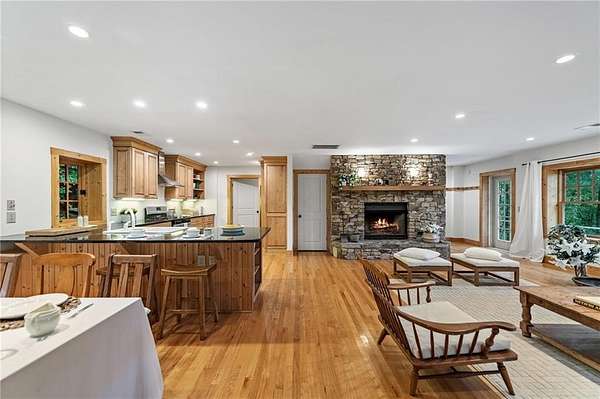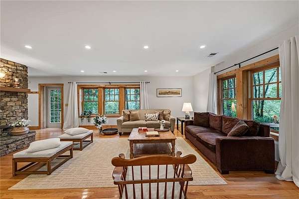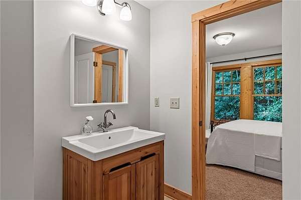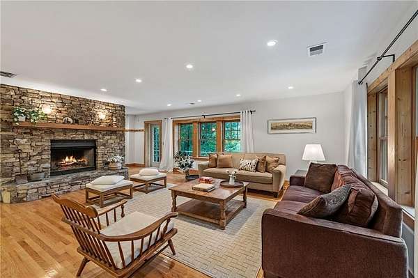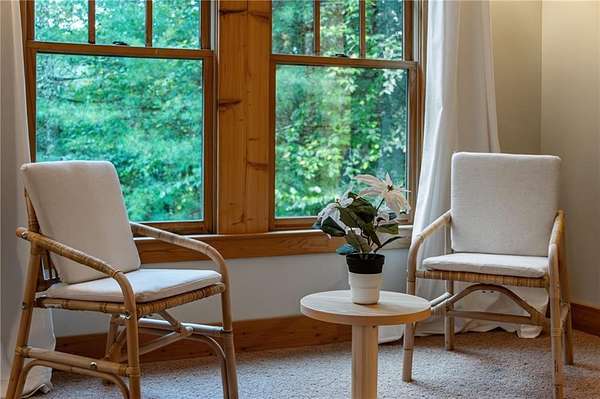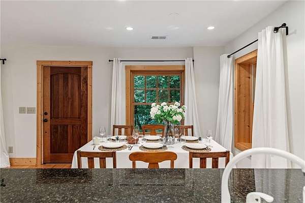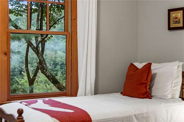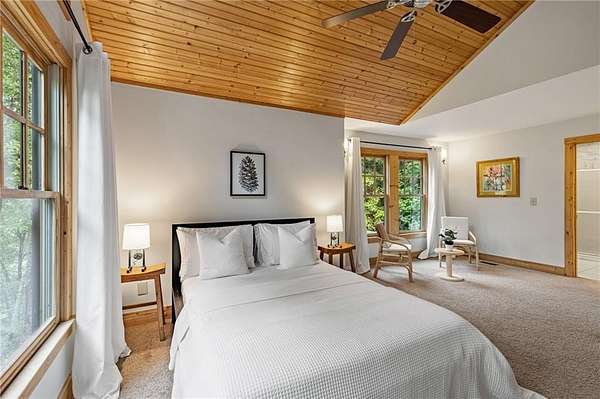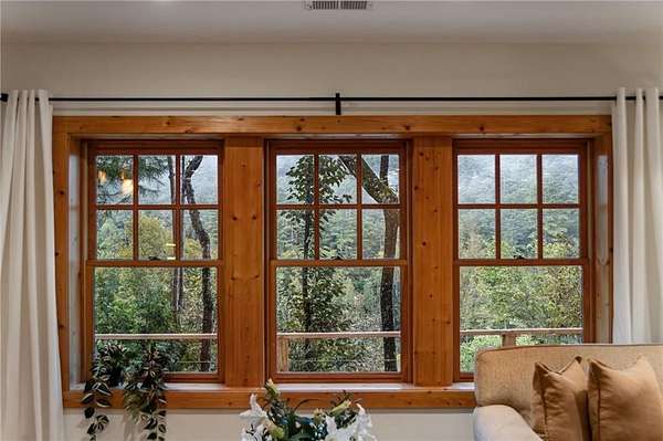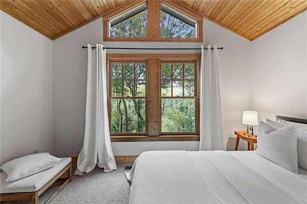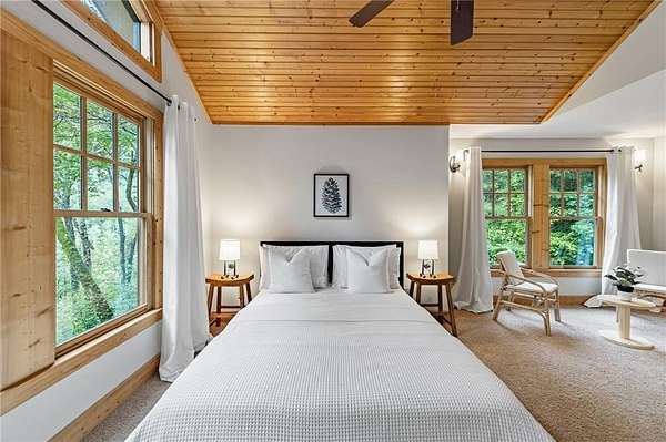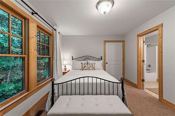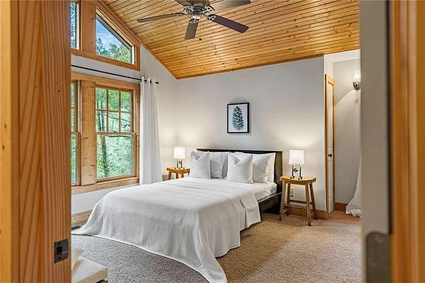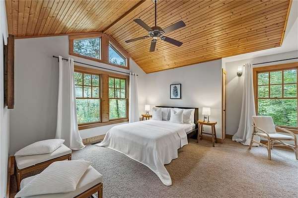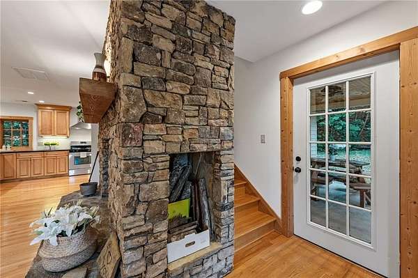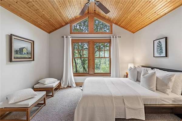 Experience the Ultimate Mountain & Lake Retreat in the Cohutta Wilderness. Perched on 4.6 acres adjoining Hills Lake and more than 20,000 acres of National Forest, this 3BR/2.5BA mountain retreat offers rare privacy, sweeping year-round lake and mountain views, and direct access to some of North Georgia's most iconic hiking and biking trails. A brand-new porch invites you to relax and soak in ever-changing scenery. Inside, European-inspired styling blends seamlessly with rustic mountain charm, all supported by high-speed fiber network for modern convenience. The open-concept main level features a spacious kitchen, dining area, and a stunning wood-burning stone fireplace-perfect for cozy evenings after days of adventure. A convenient half bath, already stubbed for a full, and an adjoining covered porch create the potential for a future main-level primary suite, adding even more versatility to the floor plan. Upstairs, the primary suite is a private haven with a vaulted beadboard ceiling, peaceful sitting area, and spa-like bath with a soaking tub and separate shower. This private suite also captures sweeping mountain views and overlooks the lake. Two guest bedrooms, a full bath, and a versatile loft offer plenty of space for family and friends. Step outside and the adventure begins: private trails lead directly into the Cohutta Wilderness, where endless hiking, mountain biking, trout fishing in Mountain Town Creek, and canoeing on your private lake await. After exploring, unwind on the expansive deck and take in the quiet beauty of the forest and lake below. Tucked away at the end of a long gravel road yet only 11 miles from downtown Ellijay's dining, shops, and wineries, this property strikes the perfect balance between seclusion and convenience. Whether you're an outdoor enthusiast or simply craving peace and tranquility, this one-of-a-kind retreat offers the ultimate North Georgia mountain lifestyle.
