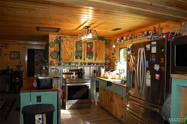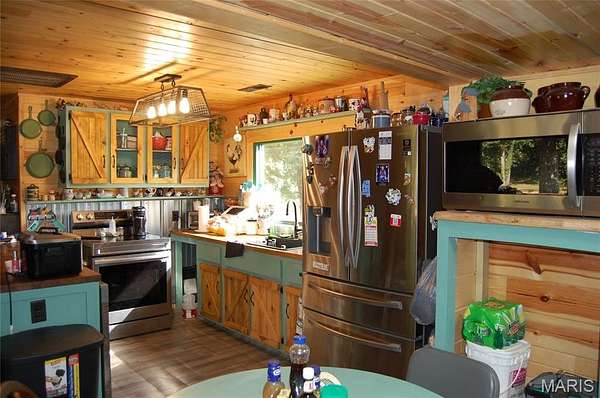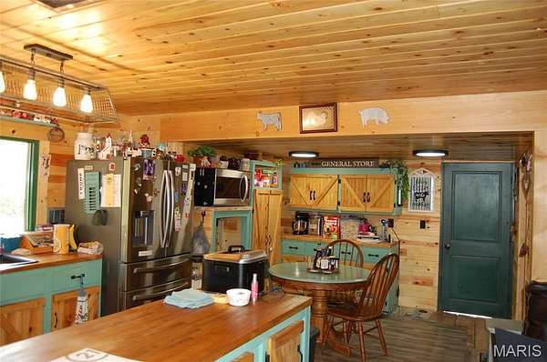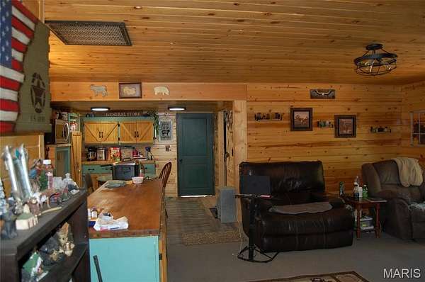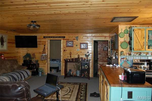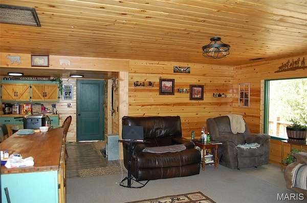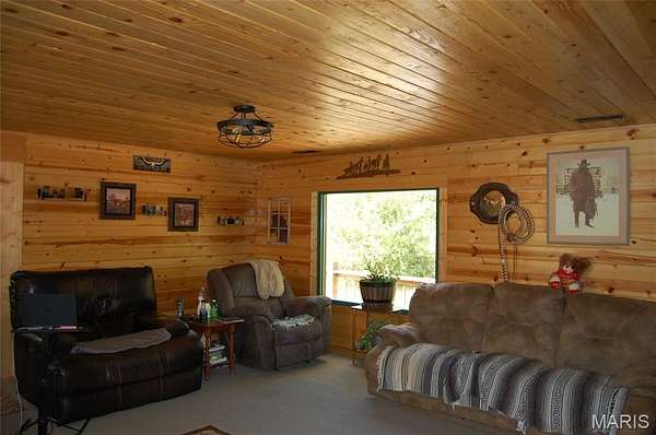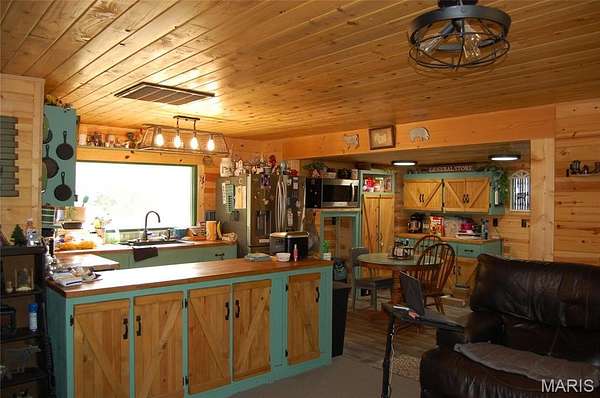 Private & secluded river home on 5.77 acres M/L with almost 1000 ft. of Black River frontage. The kitchen has black walnut countertops and custom cabinets. The cedar bathroom has a tiled shower & a jetted tub. The Property also has full RV hookups & a 16x20 metal shop building. The above-ground pool can stay.