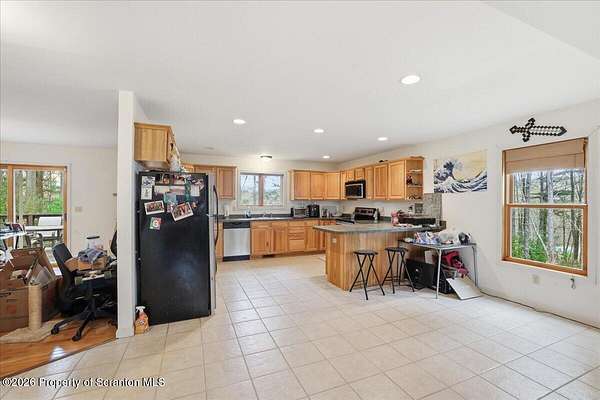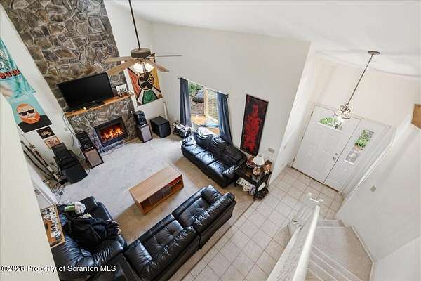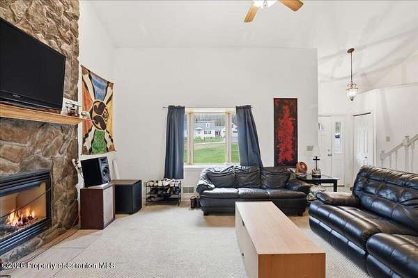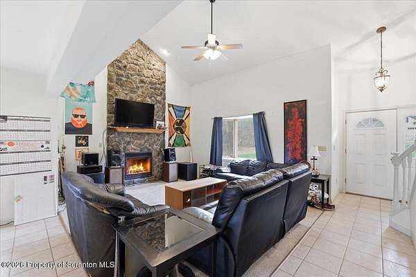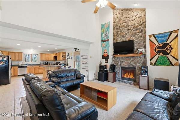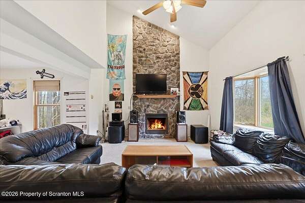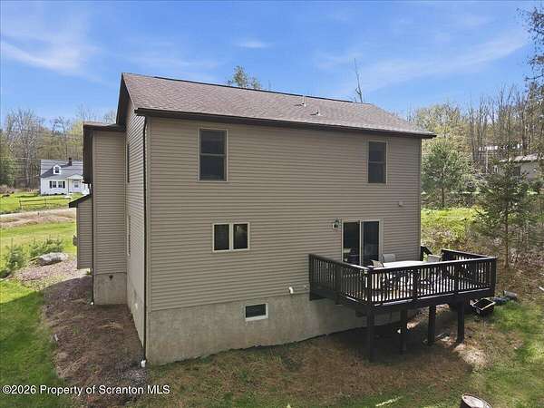 Gorgeous custom-built 4-bedroom, 2.5-bath home situated on over 2 acres, offering both privacy and space to enjoy. Ideally located just 15 minutes from Lake Wallenpaupack and only 4 minutes to Sterling Marina, making it perfect for boating enthusiasts.This home features a spacious, open layout with a large kitchen and living area highlighted by a stunning floor-to-ceiling stone-faced propane fireplace. Hardwood floors, a kitchen island, and abundant natural light add to the home's warmth and functionality. Central air ensures comfort year-round.The primary suite includes a walk-in closet, and the additional bedrooms provide ample space for family or guests. Step outside to a large back deck overlooking the expansive yard--ideal for entertaining or relaxing. There is plenty of room to park a boat alongside the driveway.A full unfinished basement offers endless possibilities for future expansion or storage, and the garage adds additional convenience.Located among estate-sized homes with no HOA, this property is well-suited as a primary residence, vacation home, or investment opportunity.
