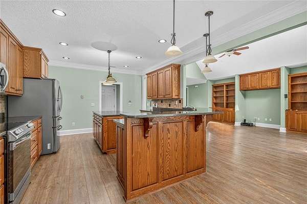 - Bay Window, Bonus Room, Built-In Bookcases, Den/Family Room, Formal Dining, Foyer, Garagedooropener, Pantry, Recessed Lighting, Shelving, Split Bedrooms, Window Treatments, w/ Connection