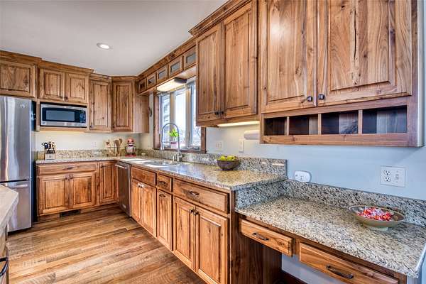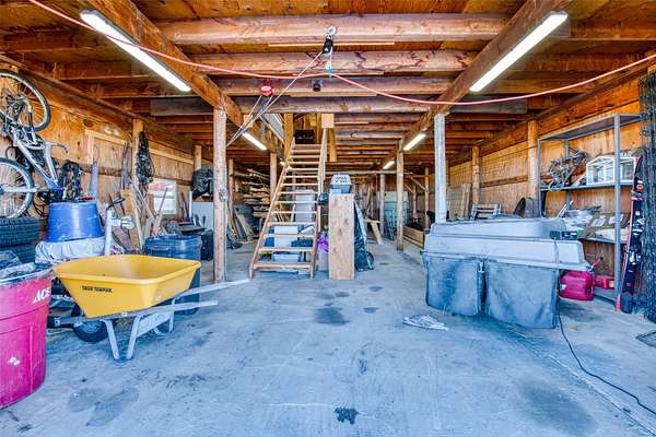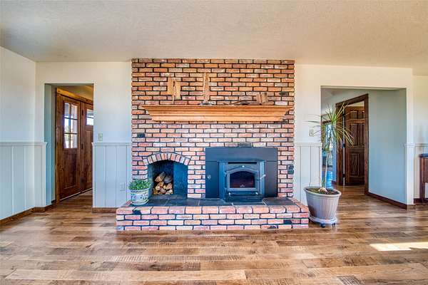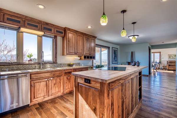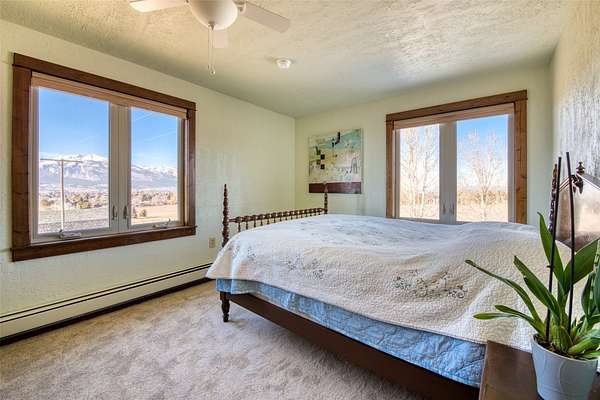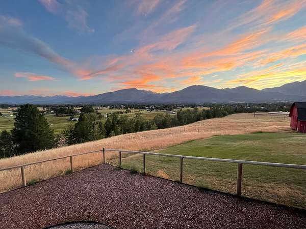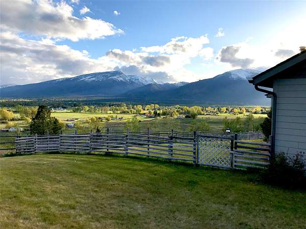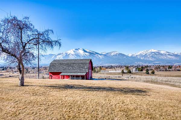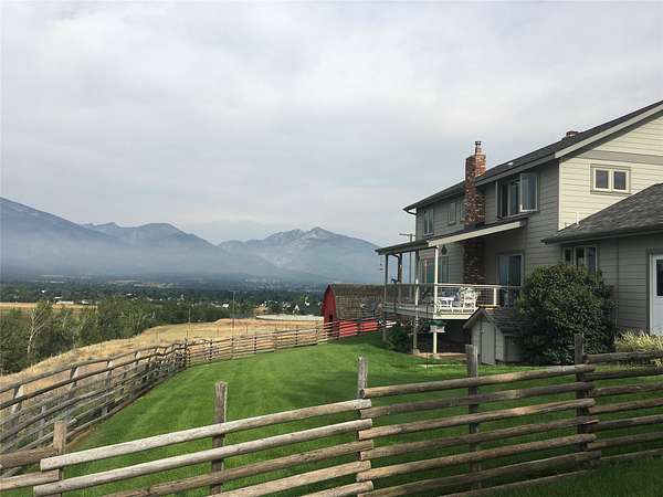 This timeless property, setting, & home offer everything you could wish for to live the Montana lifestyle. This private end-of-the-road 2-level, 4+bedroom, 3-bathroom home has gorgeous mountain views everywhere you look. With a large detached shop, a magical garden setup, & large red western barn, offering everything you need to enjoy country life. The kitchen provides a generous space for culinary pursuits, featuring a large kitchen island, stone countertops, & efficient workable space w/ access to the perfect deck for easy outdoor living! In the living room, a comforting fireplace creates a warm ambiance, perfect for quiet evenings under the Big Sky & great views of the Bitterroot Canyons. The primary suite offers both privacy & convenience, with a lovely tiled walk-in shower & 3 more bedrooms, bathroom & a hobby room are all located on the upper level. The lower level includes a family room, a den, a bath, a utility room, & growing room, perfect for starting your early plants. This home offers solar & gas heat.