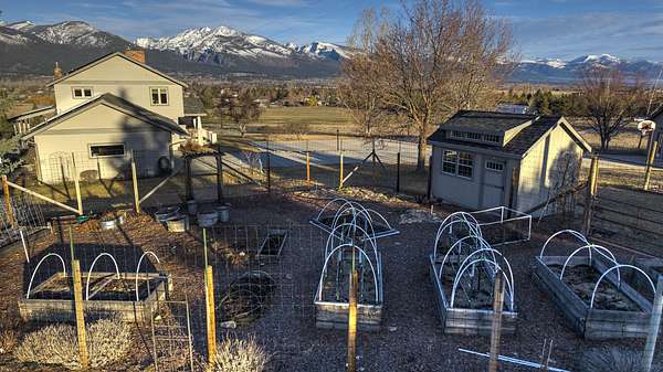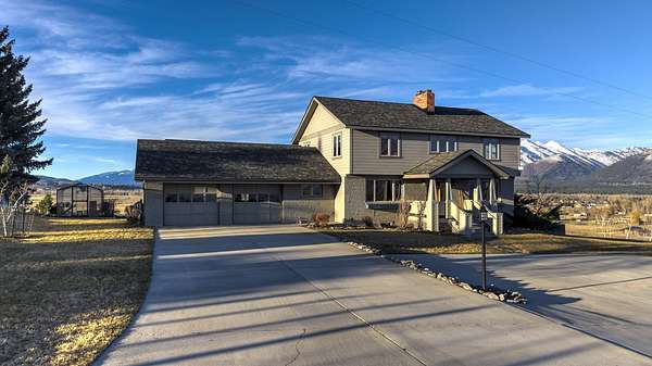 This property offers the entire Montana dream lifestyle. Situated on over 10 acres, this private, end-of-the-road home features 4+ bedrooms, 3 bathrooms, & stunning mountain views. A large detached shop, a magical fenced garden with drip irrigation, greenhouse, & a large red barn for horses or additional storage, enhance the appeal! The kitchen boasts custom walnut cabinetry, a large island, & granite countertops. Glass doors open to a deck with panoramic Bitterroot Valley views. The living room fireplace adds warmth & charm, & high-end walnut floors adorn the first floor. The primary suite includes a tiled walk-in shower, and the upper level has three more bedrooms, a full bathroom, & a hobby room. The lower level offers a family room, bedroom, bath, utility room, & a growing room. Apples, plums, cherries, peaches, apricots, raspberries, blueberries, & honeyberries thrive in the low-maintenance fenced backyard. Solar power & gas heat complete this peaceful, convenient country home. The home is equipped with a 20 kWh battery backup that automatically switches on in the event of a power outage. The property is minutes to the Bitterroot Stock Farm Golf & Sporting Club, Hamilton Public Course, all the amenities in town, shopping, hospital, schools, restaurants, & seasonal farmer's market. Enjoy the nearby Bitterroot River, fishing, hiking, Lake Como & Painted Rocks Reservoir, & the all the recreation Montana has to offer. *Views, Water Rights, Three Levels. Main, Upper & Finished Basement.