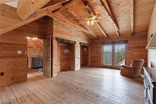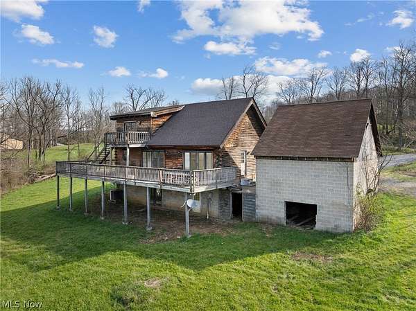Picture the possibilities waiting on these 11 private acres, where a little vision and some thoughtful TLC could breathe new life into this rustic log home and turn it into the country retreat you've always imagined. Tucked away in a peaceful setting just minutes from State Route 22, this property offers the rare chance to create something truly special while enjoying both privacy and convenience. Inside, soaring cathedral ceilings and an open-concept layout set the stage for warm gatherings and cozy evenings by the fire. The kitchen, dining, and living spaces flow together beautifully, offering the perfect canvas to update and personalize to your taste. Two main-floor bedrooms provide everyday ease, while the third bedroom and flexible basement space offer room to grow, including the potential for a third full bath. Outside, the charm continues with a wraparound deck just waiting to become your favorite place for morning coffee, summer barbecues, or quiet evenings listening to nature. The detached garage offers generous storage above and below, making it ideal for hobbies, tools, and outdoor equipment. With its solid bones, scenic acreage, and endless potential, this is more than a home needing a little love, it's an opportunity to create your own private woodland haven from the ground up. Call an agent and schedule your showing today!