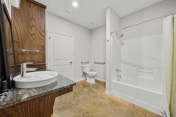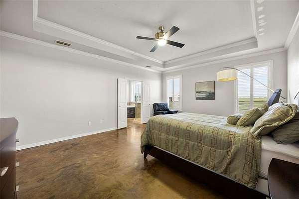 The private primary suite includes a spacious ensuite bath with dual vanities, a soaking tub, walk-in shower, and a large walk-in closet. Secondary bedrooms offer generous closet space. One of the secondary bedrooms has direct access to a shared bathroom--functioning like an ensuite--making it ideal for guests or older children who prefer more privacy.