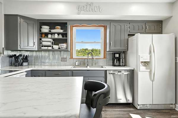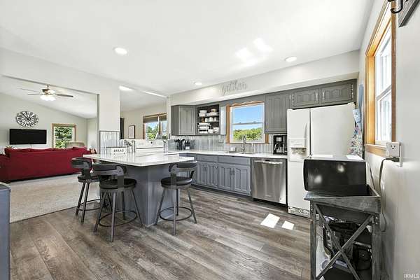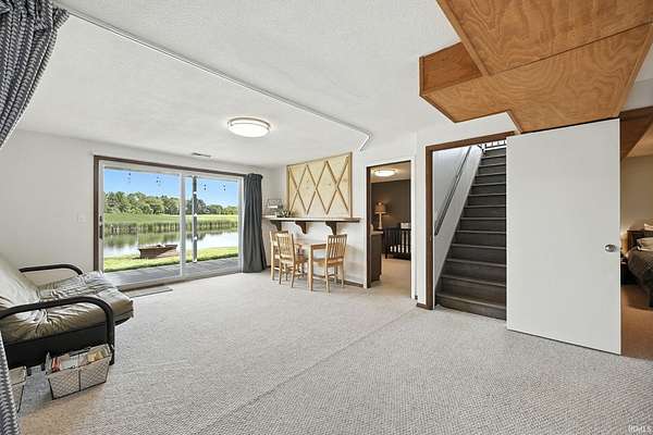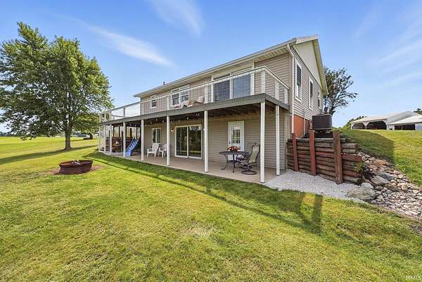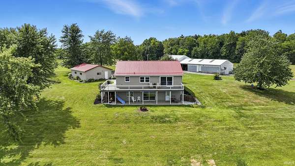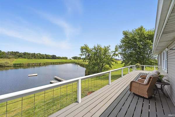 Welcome to 3810 W 600 S-57, a hidden gem tucked along the Whitley/Noble County line with 15.64 acres, a sparkling pond, and all the charm of country living. This property combines serene natural beauty with practical updates and flexible spaces, creating the ideal backdrop for your best life. The home itself is filled with comfort and light. On the main level, you'll enter into an open dining area (currently used as an office), with view into the crisply designed kitchen. Down the hall you can see a spacious primary bedroom, and a newly renovated full bath. The most impressive interior space, the living room, wows with vaulted ceilings, new carpet, and large windows framing sweeping views of the pond and acreage. Step right outside to the wraparound deck where mornings feel peaceful and evenings are simply breathtaking. The walk-out lower level extends your living space with two bedrooms, a flex space, and an additional bonus room that could serve as a bedroom, office, or creative hobby area. A second fully renovated full bath adds modern convenience, while the new oak staircase and covered patio access make this level as functional as it is inviting. From the concrete patio, you'll enjoy some of the most picturesque views on the property, and you can walk past the fire pit right down to the pier. There's a rowboat, a raft, and a tree swing inviting you to enjoy the space. In this meticulously maintained home, recent updates give you peace of mind and room in your budget: renovated bathrooms (2025), new carpet, subfloors, trim, and paint (2025), new kitchen countertops (2025), a recently replaced heat pump and coil (2021) & pressure tank (2020), added insulation (2022), newer washer and dryer (2022), and more. Even the details--like resealing the driveway (2023) and upgrading kitchen flooring, lighting, and appliances in recent years--reflect the thoughtful care poured into this home. Outdoors, the possibilities are endless. A 2.5-car detached garage is a short walk to the house, & adds convenience with plenty of room for storage, tools, or hobbies. A barn & chicken coop offer space for projects or homesteading, while the flower garden & trail winding through the acreage invite you to soak up every season. With its balance of updated living spaces, natural beauty, and room to grow, this property is more than a home--it's a safe haven. Come experience it for yourself - opportunities like this are so rare!