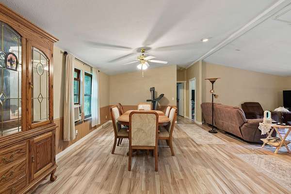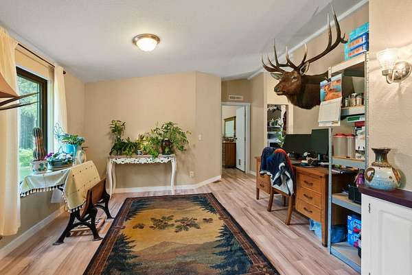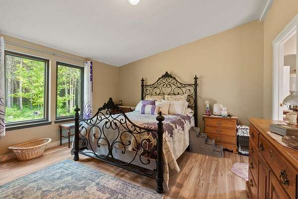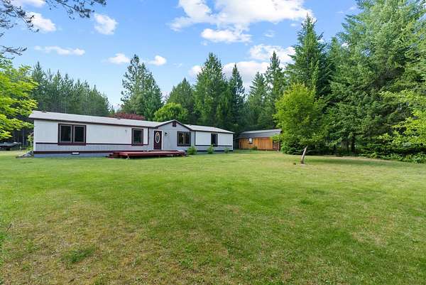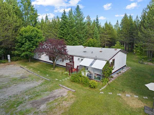 Discover the perfect blend of peaceful country living and modern convenience with this exceptional property. Situated on 10 flat, treed acres, this 1,800-square-foot manufactured home, built in 1999, offers a private and serene setting. Step inside to find a welcoming interior featuring updated flooring throughout and soaring vaulted ceilings that create a sense of spaciousness. The well-designed floor plan includes three bedrooms and two bathrooms. The primary bedroom serves as a true retreat, complete with an en suite bathroom featuring a luxurious garden tub for ultimate relaxation. A unique highlight of this property is the versatile "man cave," currently utilized as a home gym and office space, providing the perfect flex-space to suit your needs. Whether you're enjoying the tranquility of your expansive property or relaxing in the comfort of the updated interior, this home offers a rare opportunity for idyllic country living. New roof was just installed on the house. We have added a new roof.