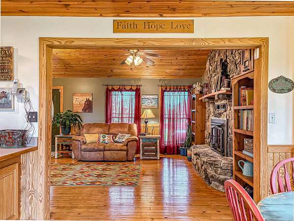 Discover your own slice of paradise with this stunning 50-acre m/l property, perfectly blending rural charm with modern comforts. Nestled just under 5 miles from town, you can enjoy the best of both worlds-the serenity of rural life and the convenience of nearby amenities. With 50 acres of lush land, this property is ideal for farming, gardening, or recreational activities. The property is fully fenced and cross-fenced, has a pond, a freeze proof cattle waterer and corral and a year-round spring. The 40x50 barn and additional workshop are perfect for the hobbyist or farmer. The charming 3-bedroom, 2-bathroom home boasts a warm, welcoming atmosphere with pine floors, doors and trim to enhance the rustic charm. Also included are walk-in closet, energy efficient windows, and a whole-house generator.