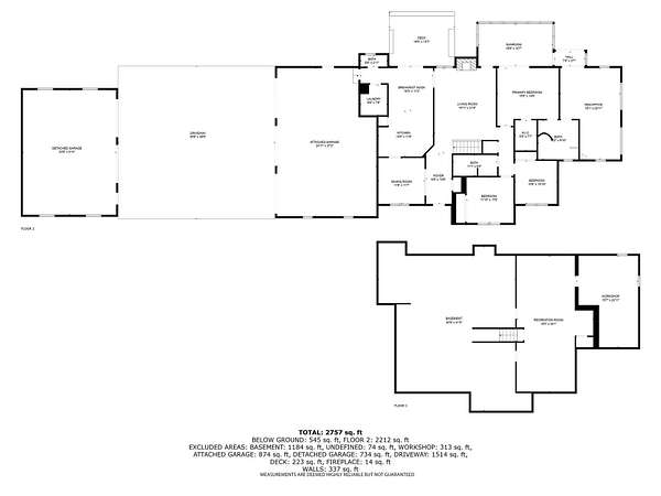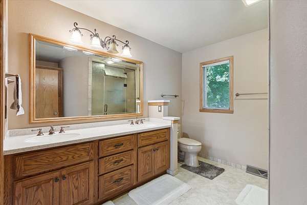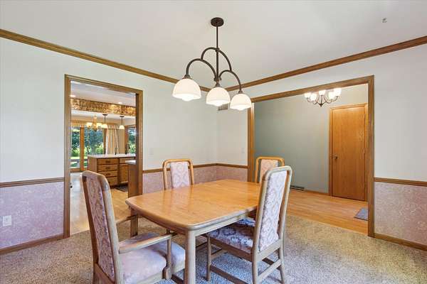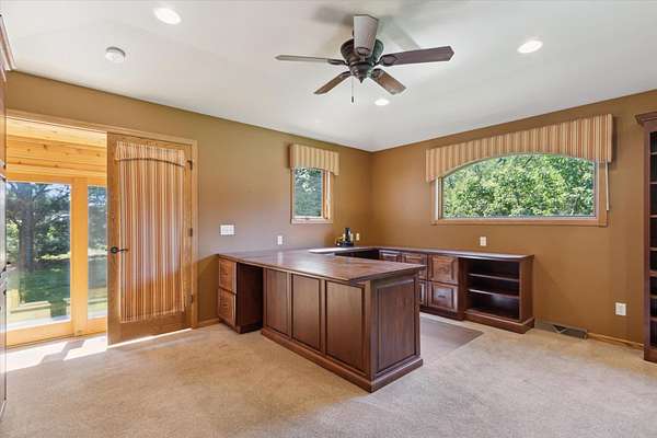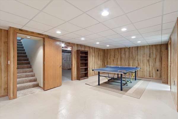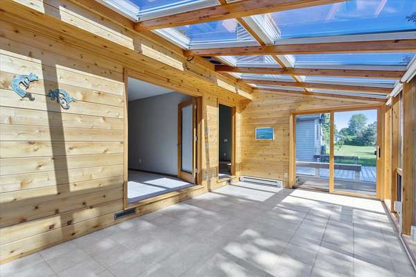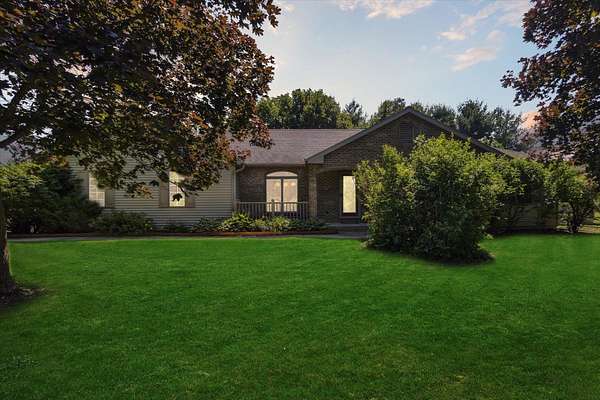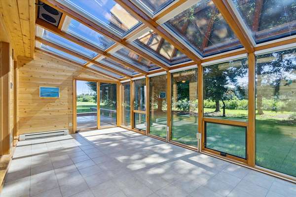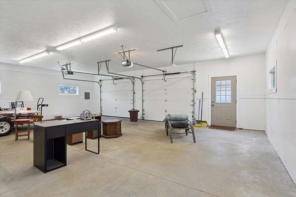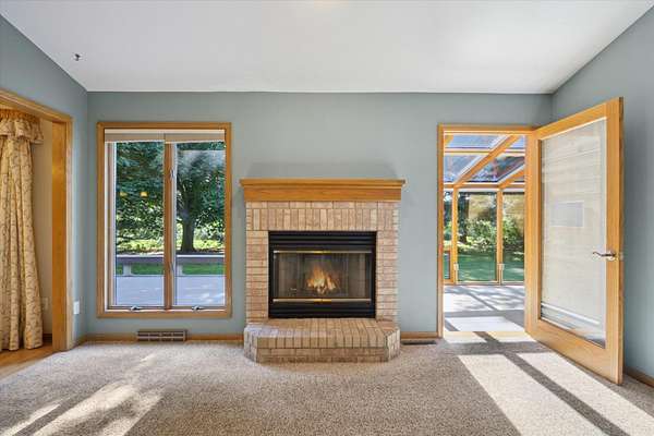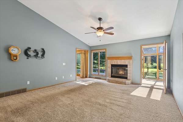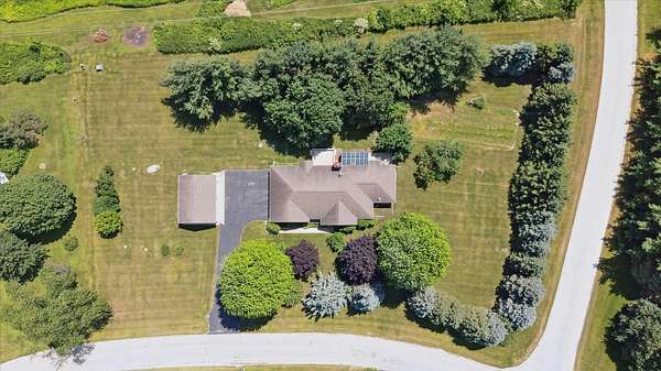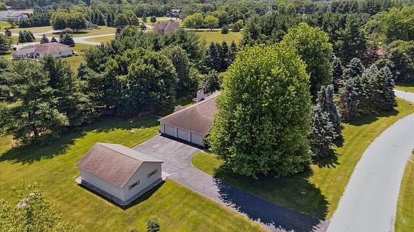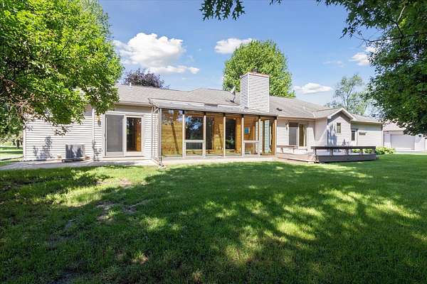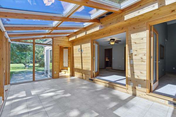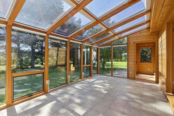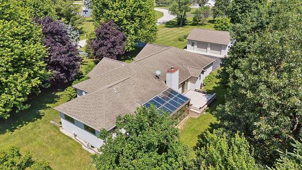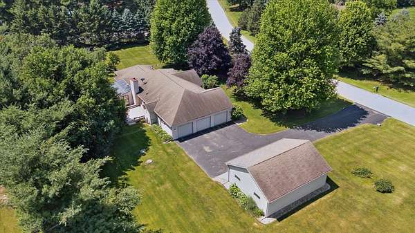 Offering a blend of privacy and tranquility this 3 bed 2.5 bath ranch is nestled among established trees and sits on 1.55 acres. Step inside to a bright and spacious living room w/ vaulted ceilings and a wood-burning fireplace. The primary bedroom has a luxurious ensuite featuring a steam shower and the ability to step through French doors into the spacious sunroom for year-round comfort. A large home office space could also be a cozy den with its own fireplace. The lower level has a large living room, workshop room, and an vast amount of storage. Exceptional space and parking options with a 3-car attached garage plus a 2-car detached garage--great for hobbyists or extra storage needs. Don't miss this rare opportunity to own a home with both charm and functionality in a desirable setting!
