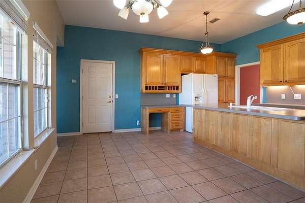 Built in 1998, the home showcases solid construction and thoughtful design throughout its 2,180 square feet of living space. The kitchen offers ample counter space, cabinetry, and a comfortable breakfast area overlooking the pond. A formal dining area provides plenty of room for gatherings.