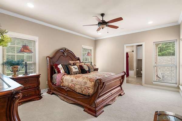 Inside, a sprawling living room flows seamlessly into the gourmet kitchen--an entertainer's dream--while walls of windows frame peaceful views of the surrounding landscape. The main-level primary suite is a true retreat, boasting his and hers spa-inspired bathrooms and dual walk-in closets for unmatched comfort and privacy.