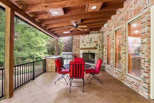Work from home in the custom office or step outside to your own outdoor sanctuary--complete with a covered porch, built-in BBQ, and a wood-burning fireplace ideal for cozy evenings under the stars.