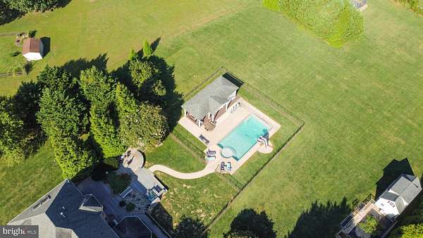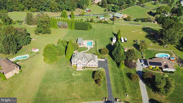 Property will be available for showings starting 1/17. Appointments are available to be scheduled now. Set on a beautifully maintained 2.39-acre level lot, this exceptional Gast Construction custom-built brick home impresses you with a natural, flowing sense of space, excellent craftsmanship, and the feel of resort-style living. Upon arrival, the superior quality of the home is evident; from the full brick exterior, 50-year lifetime architectural shingles, Andersen windows and doors, and thoughtfully designed hardscaping that leads to the private, expansive rear yard designed for both everyday enjoyment and turnkey entertaining. Step through the front door into a dramatic two-story foyer where a vaulted ceiling draws your eyes to a beautiful 20-light chandelier, extensive moldings and a center staircase to set the tone of what is to come. Hardwood floors run throughout the home, drawing you past the formal living room to the left with a tray ceiling and to the right is the elegant dining room with wainscotting. Both formal rooms feature Palladian windows, plantation shutters, pocket doors and are completed with beautiful custom millwork. The kitchen masterfully blends warmth and functionality with custom maple cabinetry, granite countertops, ample pantry storage, a built-in desk area, under and above-cabinet lighting, and a full suite of appliances including a propane Jenn-Air range with griddle and downdraft, double full-size ovens in the island, French door refrigerator, and a cozy propane fireplace. From the breakfast nook, oversized double sliders open to the backyard, seamlessly connecting indoor and outdoor living. In an open concept theme, the sunken family room features recessed lighting, two ceiling fans, a fireplace with tiled surround and wood mantle. This area is anchored by concrete columns that subtly define the space while maintaining the open flow. A powder room and a highly functional laundry and mudroom with built-ins, utility sink, freezer, ironing station, and a custom hand-built spiral oak staircase complete the main level. There is interior access to the fully insulated three-car garage offering extra-deep bays, built-in shelving, pulley storage, and a separate door to invite you to the backyard. Upstairs, 4' wide hallways and hardwood floors lead to a serene primary suite with crown molding, and a spa-inspired bathroom featuring a jetted tub, glass-enclosed tiled shower, dual vanities, a private water closet, linen storage, and a spacious walk-in closet. Four additional generously sized bedrooms complete with builder customizations are on this level. One includes a full ensuite bathroom. A hall bathroom compliments the other three bedrooms. The fifth bedroom is very versatile and could be used for flexible purposes. There's built-in storage benches, dormer storage, recessed lighting, and separate HVAC zoning for this space. The lower level with 8'+ ceilings is ready for finishing with electric and a full bath rough-in, insulated ceilings, deep freezer, built-in shelving, oak stairs, and double doors leading to extra wide walkout steps. Outside, is the icing on the cake! The level, private backyard is anchored by a fully fenced in saltwater 8 foot deep pool with wet-edge plaster, waterfall, waterslide, tanning ledge, elevated deep-end ledge, heated outdoor shower, and app-controlled systems. A pool house and covered patio feature a powder room, storage area, ceiling fans, stacked-stone accents, stained-glass custom countertops, bar sink, undercabinet refrigerator, outdoor TV, and wired speakers. Attached to the home, a screened-in porch with Trex decking, dimmable lighting and Sunbrella shades offers year-round enjoyment. Completing the grounds are a hot tub, firepit area with built-in stone seating, two story storage shed, chicken coop, dedicated garden with 2 raised garden beds and compost bin.
