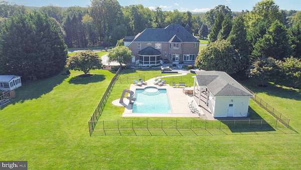 Property will be available for showings starting 1/17 kicking off with an open house from 10:00AM-1:00PM. Located in My Lady's Manor is this beautifully maintained 2.39-acre level lot, this exceptional Gast Construction custom-built brick home impresses you with a natural, flowing sense of space, excellent craftsmanship, and the feel of resort-style living. Upon arrival, the superior quality of the home is evident; from the full brick exterior, 50-year lifetime architectural shingles, Andersen windows and doors, and thoughtfully designed hardscaping that leads to the private, expansive rear yard designed for both everyday enjoyment and turnkey entertaining. Step through the front door into a dramatic two-story foyer where a vaulted ceiling draws your eyes to a beautiful 20-light chandelier, extensive moldings and a center staircase to set the tone of what is to come. Hardwood floors run throughout the home, drawing you past the formal living room to the left with a tray ceiling and to the right is the elegant dining room with wainscotting. Both formal rooms feature Palladian windows, plantation shutters, pocket doors and are completed with beautiful custom millwork. The kitchen masterfully blends warmth and functionality with custom maple cabinetry, granite countertops, ample pantry storage, a built-in desk area, under and above-cabinet lighting, and a full suite of appliances including a propane Jenn-Air range with griddle and downdraft, double full-size ovens in the island, French door refrigerator, and a cozy propane fireplace. From the breakfast nook, an oversized slider opens to the backyard, seamlessly connecting indoor and outdoor living. In an open concept theme, the sunken family room features recessed lighting, two ceiling fans, a fireplace with tiled surround and wood mantle. The family room has bi-parting sliding doors that open to the back patio. This area is anchored by concrete columns that subtly define the space while maintaining the open flow. A powder room and a highly functional laundry and mudroom with built-ins, utility sink, freezer, ironing station, and a custom hand-built spiral oak staircase complete the main level. There is interior access to the fully insulated three-car garage offering extra-deep bays, built-in shelving, pulley storage, and a separate door to invite you to the backyard. Upstairs, 4' wide hallways and hardwood floors lead to a serene primary suite with crown molding, and a spa-inspired bathroom featuring a jetted tub, glass-enclosed tiled shower, dual vanities, a private water closet, linen storage, and a spacious walk-in closet. Four additional generously sized bedrooms complete with builder customizations are on this level. One includes a full ensuite bathroom. A hall bathroom compliments the other three bedrooms. The fifth bedroom is very versatile and could be used for flexible purposes. There's built-in storage benches, dormer storage, recessed lighting, and separate HVAC zoning for this space. The lower level with 8'+ ceilings is ready for finishing with electric and a full bath rough-in, insulated ceilings, deep freezer, built-in shelving, oak stairs, and double doors leading to extra wide walkout steps. Outside, is the icing on the cake! The level, private backyard is anchored by a fully fenced in saltwater 8 foot deep pool with wet-edge plaster, waterfall, waterslide, tanning ledge, elevated deep-end ledge, heated outdoor shower, and app-controlled systems. A pool house and covered patio feature a powder room, storage area, ceiling fans, stacked-stone accents, stained-glass custom countertops, bar sink, undercabinet refrigerator, outdoor TV, and wired speakers. Attached to the home, a screened-in porch with Trex decking, dimmable lighting and Sunbrella shades offers year-round enjoyment. Completing the grounds are a hot tub, firepit area with built-in stone seating, two story storage shed, chicken coop, dedicated garden with 2 raised garden beds and compost bin.