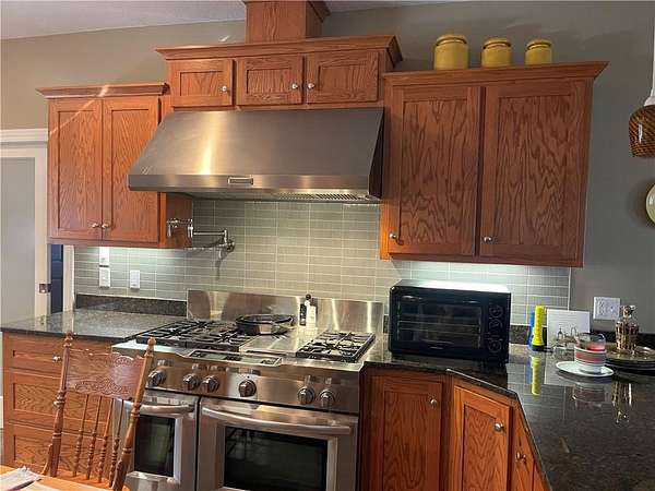 - Dishwasher, Disposal, Double Oven, Dryer, Electric Range, Exhaust Fan, Gas Range, Refrigerator, Stainless Steel Appliance(s), Washer, Water Purifier, Water Softener