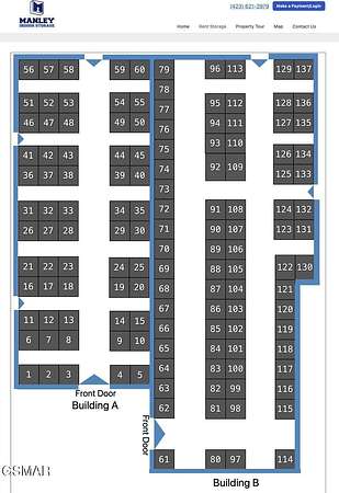 Take I-40 East to I-81 and get off interstate from Exit 4 onto 341/66/Walnut Creek Rd. Follow to T intersection at Texas Roadhouse past Walmart and turn right onto 11E. Go past Morristown Fire Station and turn into drive at Manley Storage sign Drive down drive to storage building.