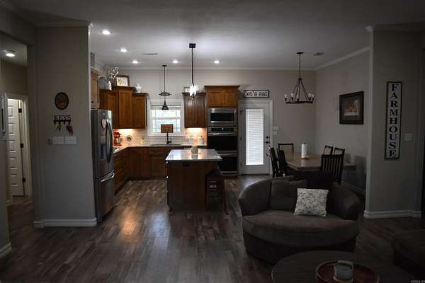 Located just minutes from Alma, this beautifully finished home has many great amenities you're sure to love. The 1.87-acre lot is spacious, with a large back yard plenty of room for entertaining family and friends. Inside the home you'll notice the open floor plan in the living area, along with granite counter tops in the kitchen, gas cooktop, double ovens, and a large pantry offering plenty of storage. The split floor plan offers a total of three beds and two baths, with a beautifully designed master suite, complete with a tile walk-in shower. With its quiet location, peaceful neighborhood, convenience and elegance, you will not want to miss this home. Schedule your private showing today. o 1.87 +/- Acres o 1,660 Square foot home o Two car garage o Three Bed Two Bath o Covered Front and Back Porches o Granite Countertops o Nicely finished master suite o Spacious Yard o End of dead-end road o Minutes from Down town Alma