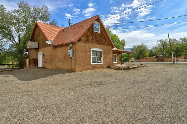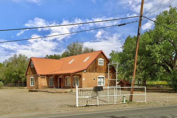 1-acre commercial parcel at the very front of the property sitting right on Corrales Rd. This two-story structure offers an open space with a loft, five rooms that could serve as offices, plenty of open space, a built-in reception desk, as well as a kitchen, bathroom, and ample parking.With a colorful history as a furniture gallery, office space, hair salon, tack store, bookstore, roofing company, and even a thrift shop, the property has proven its versatility time and again. Today, it stands ready for its next chapter, whether that be retail, office, studio, or a fresh new concept. With its prime location and flexible layout, the potential here is nearly limitless. The home and land behind the building is also for sale at 3821 Corrales Rd.if buyer is interested in purchasing together.