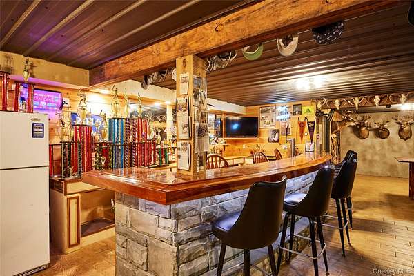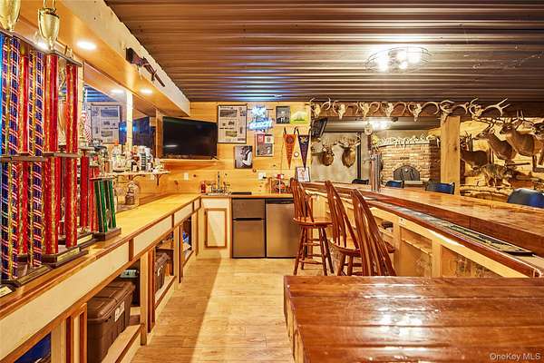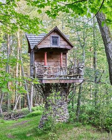 The Blue Stone Colonial and Lake Paradise is truly an estate for the ages. The home is a stoic masterpiece rising high in the Catskill Mountains with style and grace of a centuries old estate that is masterfully blended with the amenities and luxury necessary of today's modern life. The full approach ascending the blacktop driveway divides two masonry pillars as the sky opens to the 3-car garage attached to the 3900 sqft bluestone house. On the left is a fenced in vegetable and herb garden with elegant and functional potting shed. On the right are terraced stonewalls and blacktop basketball court. The back yard is entirely fenced in with a SALT WATER POOL, a custom pool house with half bath and a TREEHOUSE that would make Pete Nelson from Treehouse masters envy. When you step inside the main house the high ceilings and open concept invite you straight to the CHEF'S KITCHEN that is open to both the living and dining areas allowing for maximum socialization and entertaining. There are two full masonry wood burning fireplaces, one in the first floor living area and another in the master bedroom on the second floor. The full basement is what dreams are really made of and leaves nothing to be desired. A full hardwood bar, commercial sink, wood burning BRICK PIZZA OVEN, WINE CELLAR, wood stove and pool table. Whether a man cave, kids game room, or whole family entertaining, this space is it! Over 138 ACRES of carefully managed land for wildlife there is a mixture of deciduous and coniferous forest and an expansive trail network leading to Lake Paradise. Approximately 15 acres, the lake is an absolute wildlife and aquatic sanctuary. Perch, pickerel and largemouth bass are just a few of the target fish. This is an absolute sportsman's dream for anyone that enjoys the outdoors. From the house to the grounds, this is an estate that blends art and engineering together in an incredible masterpiece that is equal parts of form and function. No details were overlooked here. If an estate that will last generations is what you are looking for, you need not look any further. Schedule your private tour today to fully appreciate all this one has to offer.