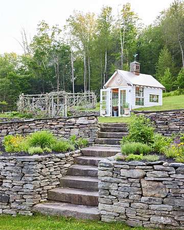 - Stone, Wood Siding