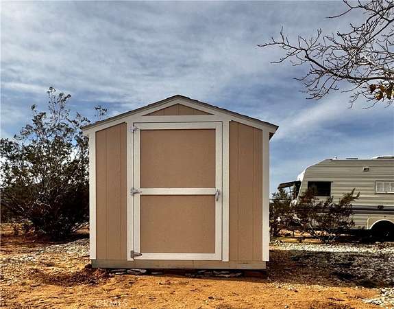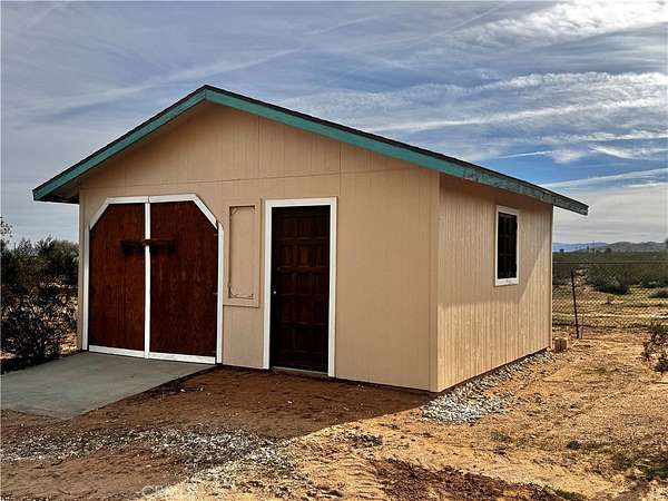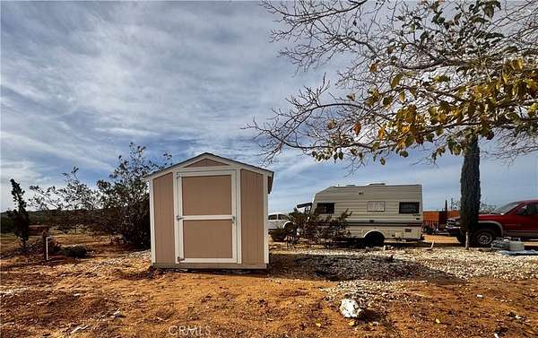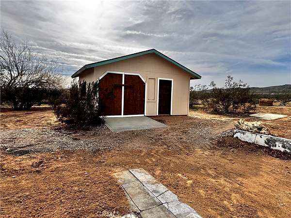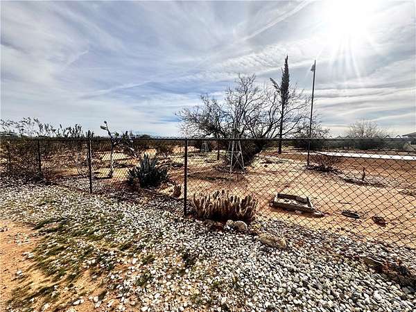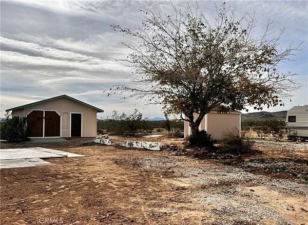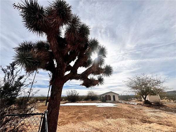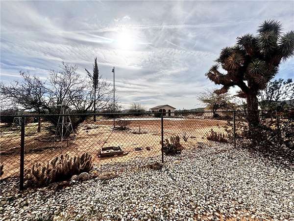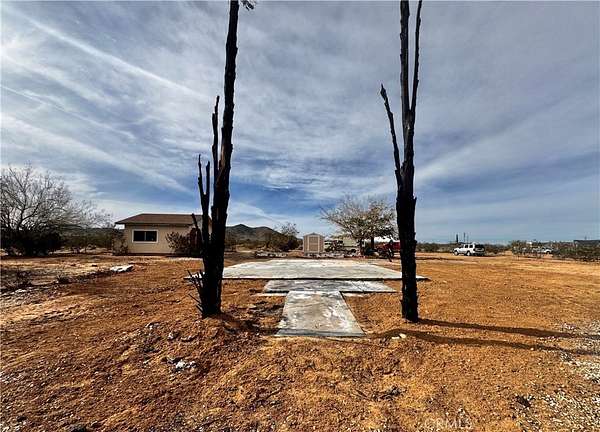 The house burned down, but the infrastructure is there! Water? You've got it! Power? It's right there and ready to reconnect when you plan your dream home! Address is assigned and existing structures currently on property include a one car garage with attached workshop and a relatively new Tuff Shed. Large slab where the house used to be, and complete chain link fencing. 2.5 acres with landscaping that includes mature mulberry and Joshua trees, blue agave and cacti. Pull up your RV, roll up those sleeves and get to work, or enjoy a secure spot with infrastructure for weekend camping. The stars are plenty, the views are endless, the privacy is pristine.