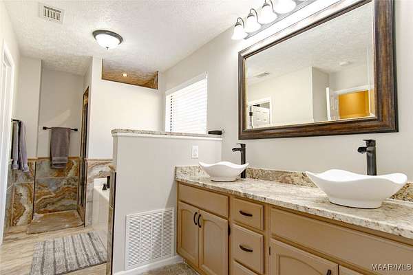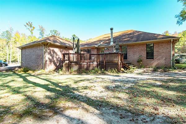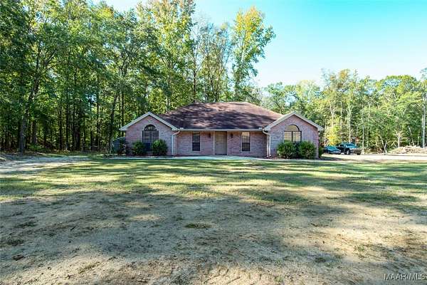 Welcome to this charming country home nestled on 5.820 acres of serene, picturesque land, just 3 miles from the heart of Wetumpka. This spacious 4-bedroom, 2.5-bathroom home offers 2,104 sq ft of living space with fresh interior paint and new recessed LED lights. Enjoy the beauty of vinyl plank floors in all main areas and bedrooms-no carpet here! The family room features soaring vaulted ceilings and a cozy wood-burning fireplace, perfect for relaxing on cooler evenings. The kitchen offers granite countertops, a tiled backsplash, newer dishwasher and double oven range(2021), a breakfast bar overlooking the family room, and ample cabinet space. A breakfast area off the kitchen provides the perfect spot for meals. The laundry room is conveniently located just off the kitchen along with the 1/2 bath. The primary bath has a double vanity, granite countertops, vessel sinks, a jetted tub, and a tiled shower. One secondary bedroom is next to the primary-perfect for an office, nursery, or toddler room. The other 2 secondary bedrooms are generously sized and share a hall bath with a double vanity, vessel bowl sinks, and a tiled walk-in shower. A front room offers great flexibility as a playroom, living room, office, or whatever suits your needs. Step outside to the back deck and explore the vast acreage, which includes a creek, wooded areas for peaceful walks, and mature blackberry, raspberry, and asparagus plants. With opportunities for wildlife watching, practicing shooting, bow hunting, or simply enjoying the outdoors, this property offers endless possibilities to include allowing horses. A double car garage provides covered parking. Electric available to both out building and one has a separate meter. Well added to property 2 years (+/-) with 1.5 hp motor and is 260 ft. deep. Enjoy peaceful country living with the convenience of being just minutes from Wetumpka!