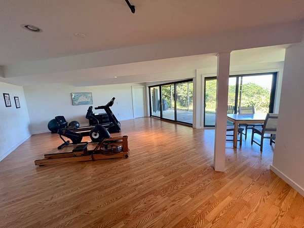 Est $16,213/moSpacious contemporary set high off Lighthouse Road with unobstructed, amazing water views of the Vineyard Sound and Elizabeth Islands. Open concept design with soaring ceilings and modern architecture. A retreat for all seasons this house is fully insulated, heated and has central air. A center island in the kitchen ensures the cook of the family does not miss out on the amazing sunsets. Ground level offers family room and gym space or just nice getaway with privacy. Access to Philbin Beach, Lobsterville Beach and all the perks of Aquinnah residency.