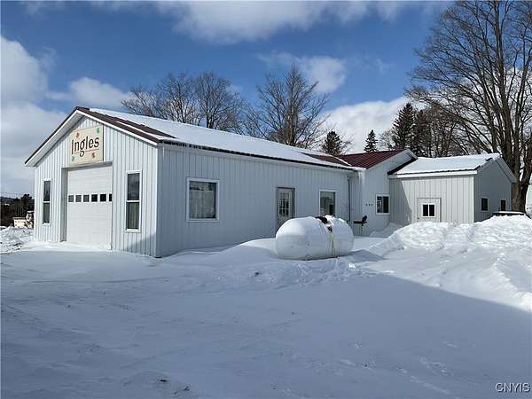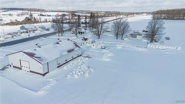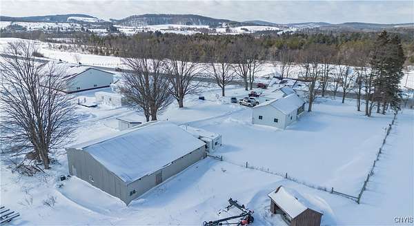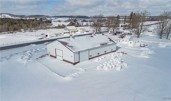 Fantastic opportunity on Rt 28 just north of Richfield Springs. Sitting on over 28 acres with nearly 1000 feet of road front this property offers endless possibilities. Newer (2018) Morton building features over 5200 sq/ft, concrete floor, heat, water, septic and propane. Four 14' overhead doors w/openers, concrete aprons, work benches and 1/2 bath. Additional 1900+/- sq/ft former sap house with heat, water, septic, 3 phase electric and 3 overhead doors. Add to that a 2000+/- sq/ft barn featuring storage and 3 horse stalls, electric, water, and concrete floors. The house features 4 bedrooms, 2.5 baths, office, and attached retail shop. Additional garage, workshop and paint shop. Fuel storage shed for both gasoline and diesel, paved driveways and more.