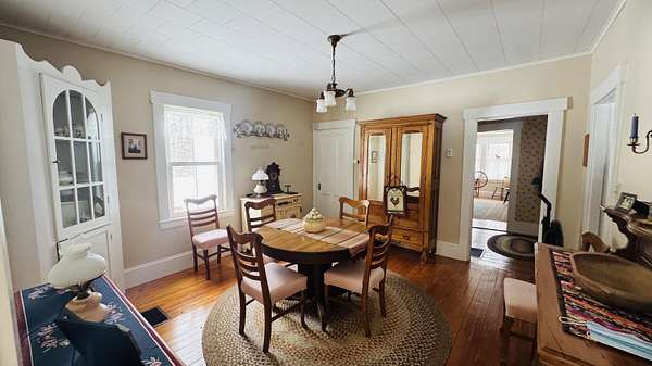 Steeped in character and rich in history, this captivating 1900s farmhouse is a rare offering where timeless charm meets modern comfort. From the moment you arrive, the setting unfolds--rolling acreage, mature trees, and a sense of quiet beauty that feels worlds away. Inside, the home is warm and welcoming, with sunlit spaces and hardwood floors that carry the charm of a bygone era. The heart of the home is a generously sized kitchen, flowing effortlessly into a classic dining room, cozy den, and an impressive great room designed for gathering and making memories. Two bedrooms on the main level offer convenience, while upstairs reveals two additional bedrooms and a versatile bonus room--perfect for a studio, retreat, or private workspace. A serene sunporch invites slow mornings with coffee and peaceful views of the surrounding landscape. Every corner reflects thoughtful care and numerous updates, preserving the home's integrity while enhancing everyday living. Outdoors, the lifestyle continues with an attached garage and an expansive 1,100-square-foot barn--ideal for hobbies, storage, or a variety of uses. The property spans 37 acres with an additional 29 acres just across the road, offering endless opportunity for recreation, farming, or simply enjoying the natural beauty that surrounds you. A truly special property--where history, space, and setting come together in perfect harmony.
