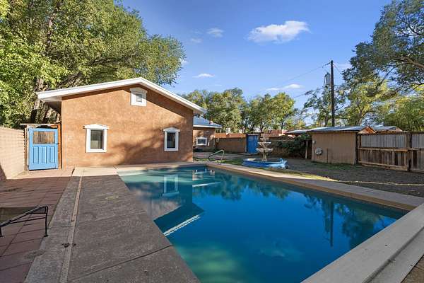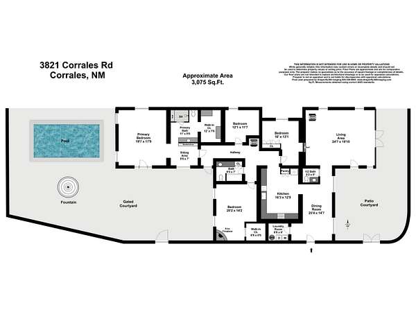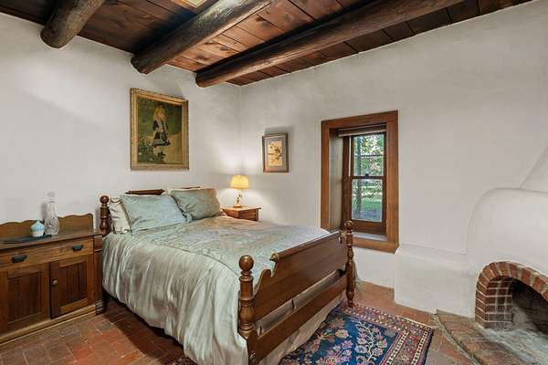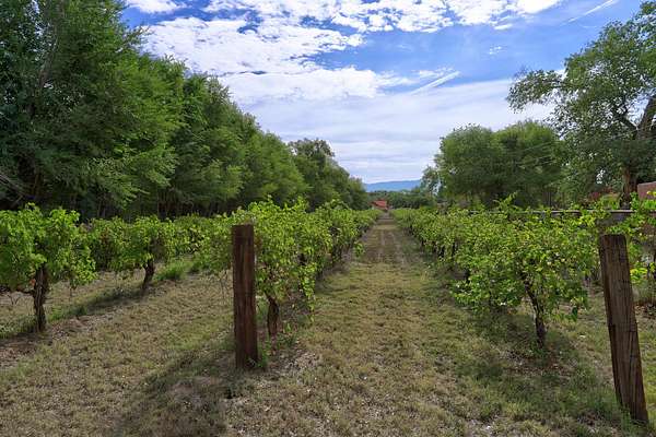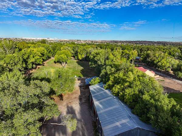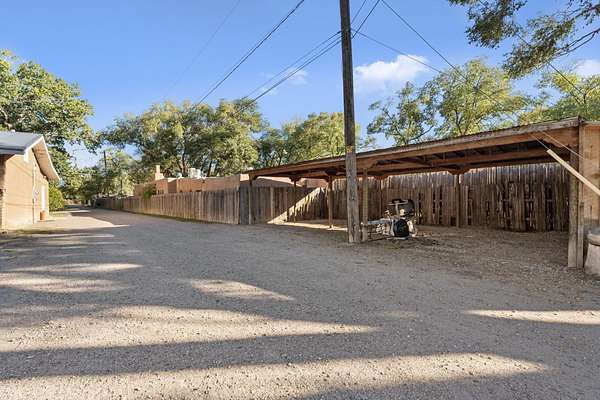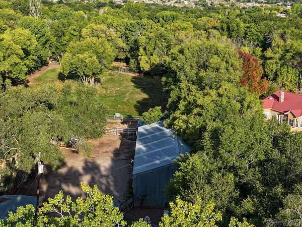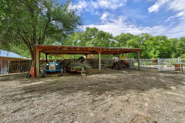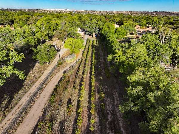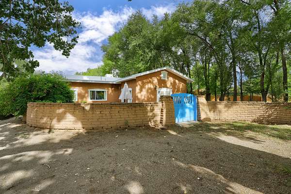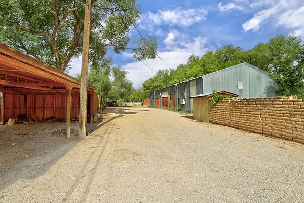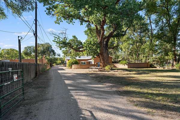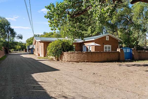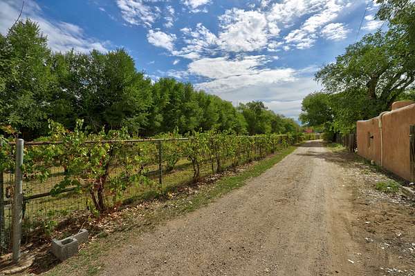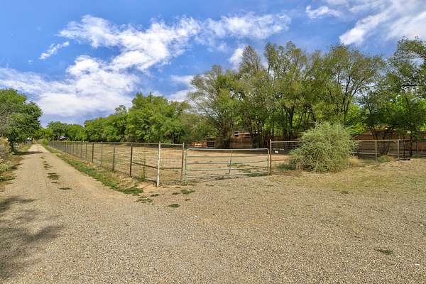 From Alameda turn north on Corrales Rd, Go just pass The Frontier Market (Meadowlark). Property is on the left side of the road. Follow the dirt road to the gate to get to the main house.