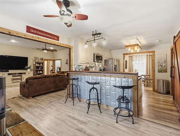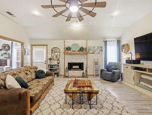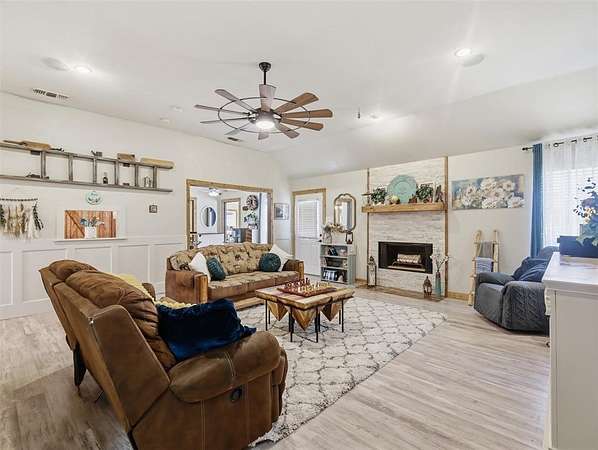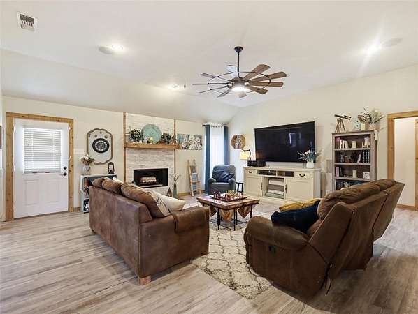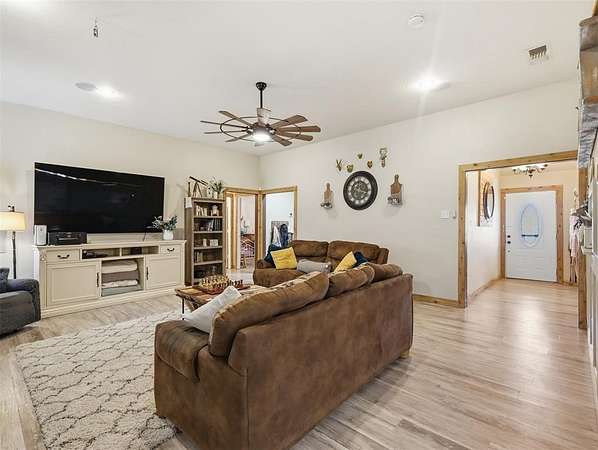 Incredible 22+Acre Estate With Beautiful Sunsets Offers The Ultimate In Comfort, Functionality, And Sustainable Living! This Exceptional Property Features Custom Butcher Block Countertops, Stainless Steel Appliances, A Spacious Pantry With Barn Door, A Breakfast Bar, And An Inviting Eat-In Kitchen. The Utility Room Offers A Sink And A Second Pantry, Great For Extra Storage. The Living Room Features A Cozy Masonry, Wood-Burning Fireplace, Creating A Warm And Inviting Space. Add To That A Huge Game Room, Providing That Flexible Extra Space To Enjoy Whatever Your Heart Desires. Easy-To-Clean Laminate Hardwood Flooring Flows Throughout The Home, Keeping It Virtually Allergy Free. The Bedrooms Are Spacious, And The Covered Front Porch Is The Perfect Spot To Enjoy The Relaxing Country Views. Extras In This Home Include A Full House Water Filtration System, Attic With Foam Insulation, A Newer HVAC System, And Solar Panels That Keep Utility Bills Exceptionally Low. Outdoors, You’ll Find A Nearly One-Acre Pond, Hiking Or Biking Trails, Goat Or Calf Shelters With Fencing, A 500 Square Foot Chicken House, And Two Large Outbuildings. One Is 720 Square Feet With Both 30 Amp And 50 Amp Service For Easy RV Hookup. The Other Is 884 Square Feet With Two 12-Foot Doors And An Unfinished Bathroom Area, Offering Incredible Flexibility. Enjoy The Peace And Privacy Of Wide-Open Spaces, Breathtaking Sunsets, And Plenty Of Room For Horses, Livestock, Gardening, Or Recreation. This Bonham Gem Is Truly A Rare Find For Those Seeking A Spacious, Self-Sufficient Lifestyle With Room To Spread Out And Thrive! Ask About The 2-1 Buydown Available!