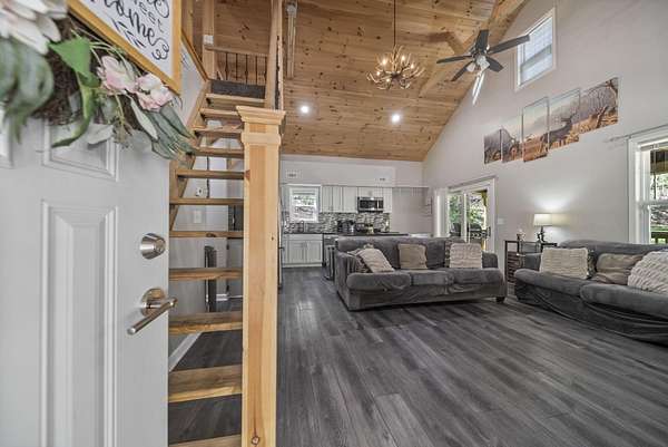Hunter's Paradise on 23 Wooded Acres - Turnkey & Built for the Outdoors If you've been looking for land you can actually use, this is it. Nestled on over 24 acres--with approximately 23 acres of mature woods--this property is a dream setup for hunting, recreation, or simply disappearing into your own private piece of nature. Built in 2020, the 1,500 sq ft home blends modern comfort with rugged functionality. Inside, you'll find a 2-bedroom layout plus a 500 sq ft loft--perfect for extra sleeping space, gear storage, or a tucked-away retreat after a long day in the woods. The kitchen is dialed in with stainless steel appliances, blue pearl granite countertops, and custom solid wood cabinetry. Durable, waterproof luxury vinyl plank flooring runs throughout the main areas, with plush carpet in the bedrooms for comfort where it counts. Cathedral ceilings open up the space, and a pocket ladder staircase leads to the loft--keeping things efficient without sacrificing style. Step outside and it gets even better--approximately 80 feet of covered deck gives you the perfect vantage point for morning coffee, evening unwinding, or watching wildlife pass through your property. Additional features: 200-amp electric service + additional 100-amp available All-electric home with a wood-burning stove (triple-wall stainless piping) for backup heat or cozy nights County water + septic (plus an additional well available, not currently in use) 10x16 storage shed (added 2021) for tools, equipment, or hunting gear Whether you're chasing whitetail, investing in land, or just want space to breathe--this property delivers. Move-in ready, low maintenance, and ready for its next owner.