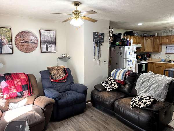 - Ceiling Fan(s), Garage Door Opener, LP Tank Rented