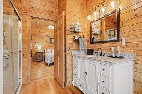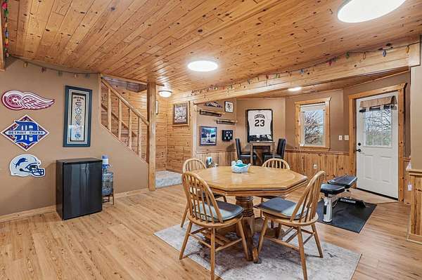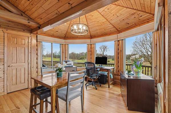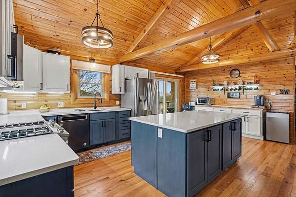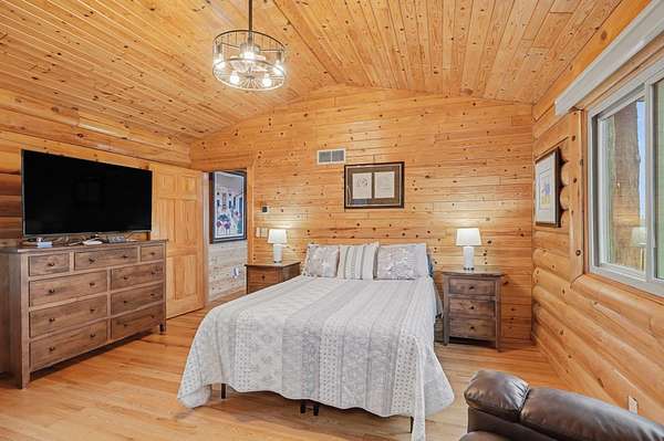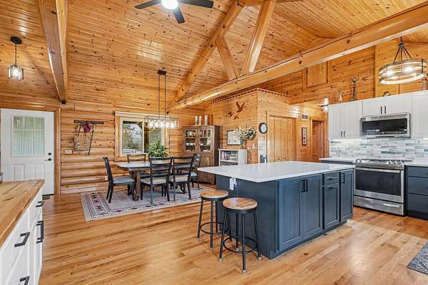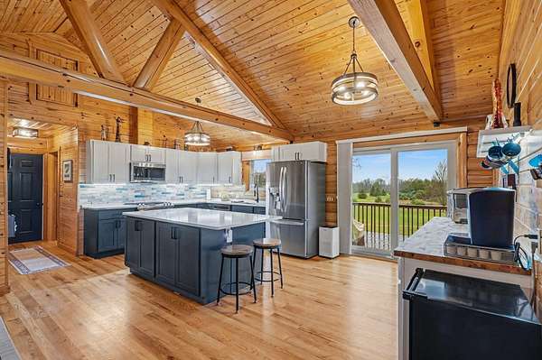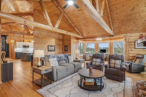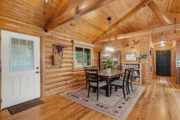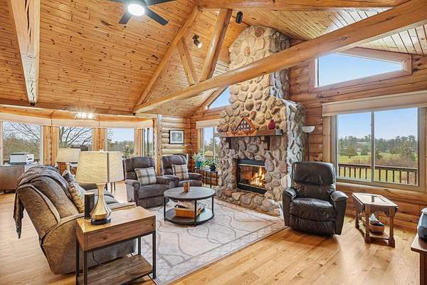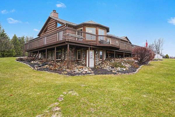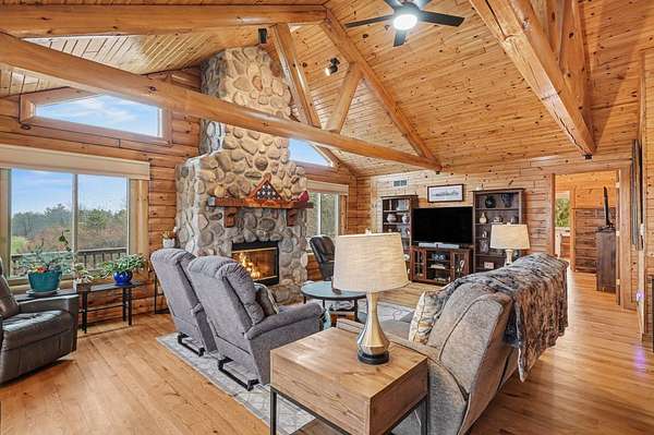 Est $2,748/moBeautiful, remodeled log home located on one of the highest points in Gladwin County, overlooking the 8th hole of the Gladwin Heights Golf Course. this stunning home features a fully updated kitchen, and thoughtful updates throughout while maintaining its rustic charm. inside, you'll find soaring cathedral ceilings, exposed log beams, and an impressive fieldstone gas fireplace with a hand-carved mantel, creating a warm and inviting living space. step outside to the spacious wraparound deck, perfect for entertaining or relaxing while enjoying the beautiful golf course views with your morning coffee. The property is surrounded by beautiful flowers and fruit trees. A rare opportunity to own a unique log home in a peaceful and scenic setting.