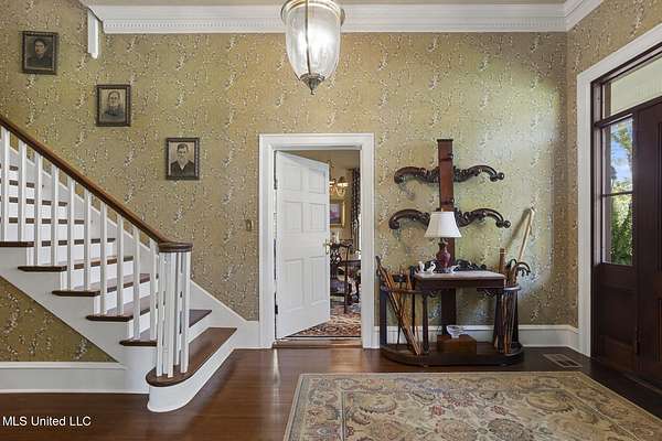 Step into history with this stunning, completely updated 1900s estate, offering 4 bedrooms each being en suite, 5 bathrooms with high rise toilets, and a spacious 22'x15' primary closet, a perfect blend of charm and modern convenience. Nestled on 57 acres of serene land, this property boasts a shop with an attached 3-car garage and a 1,800 sqft apartment above, and a barn with both water and electricity. Shop and apartment have central air each having its own system. The open yard is surrounded by lush woods, providing privacy and tranquility. A rare opportunity to own a piece of history with endless possibilities!