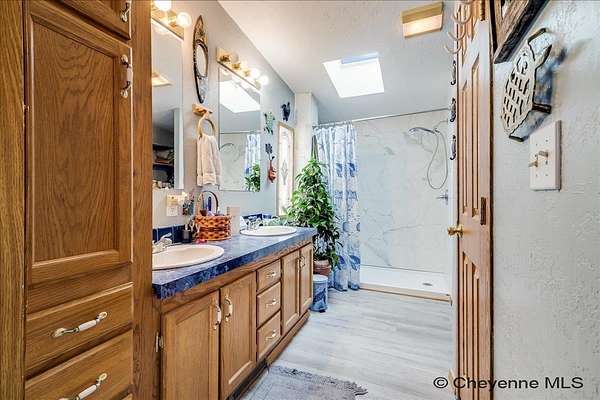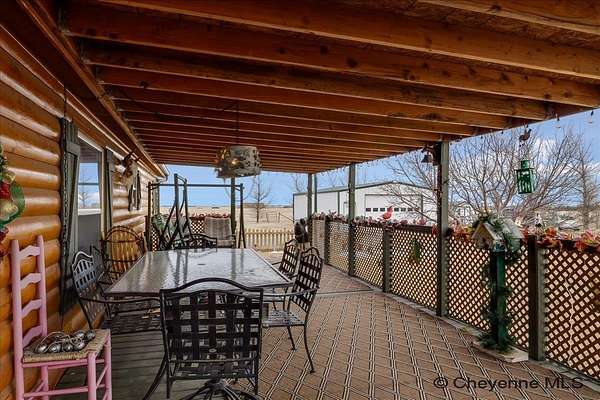 Welcome to wide-open Wyoming living at 3827 Sunny Glen Ln. Set on 40 fully fenced acres, this beautifully maintained property offers the perfect blend of peaceful country living with the convenience of town just 20 minutes away. This 4-bedroom, 2-bathroom home features an open ranch-style floor plan designed for comfortable everyday living and easy entertaining. The spacious kitchen offers ample cabinet space, a pantry, and a breakfast bar that flows seamlessly into the oversized dining area--ideal for gatherings, holidays, and everyday meals. The primary suite is a relaxing retreat with a private ensuite bathroom, featuring an updated walk-in shower, double-sink vanity, and a walk-in closet. Three additional bedrooms provide flexibility for family, guests, or a home office, along with an updated 3/4 bathroom. Additional highlights include main-floor laundry, a newer furnace and water heater, and metal roofs on the home, outbuilding, and sheds--offering durability and peace of mind. Outside, enjoy a large covered deck with a fenced yard directly off the deck, complete with established landscaping and young trees already started. The impressive 30x40 outbuilding provides endless possibilities for hobbies, storage, parking, or equipment. With no covenants, room to roam, and space to truly live, this property delivers the freedom of rural life without sacrificing access to groceries, restaurants, and shopping. Country living, modern comfort, and endless potential--this is Sunny Glen living at its best.