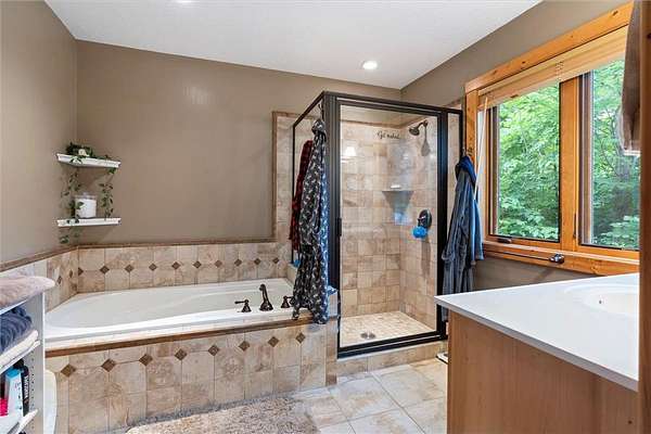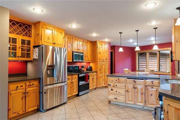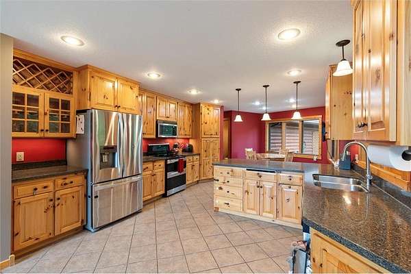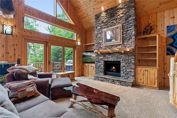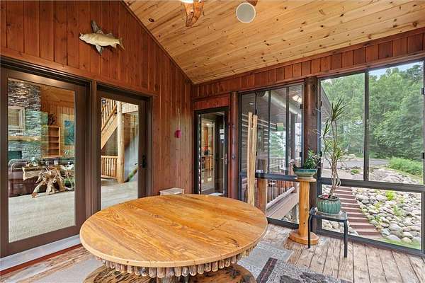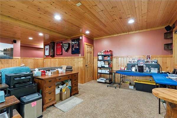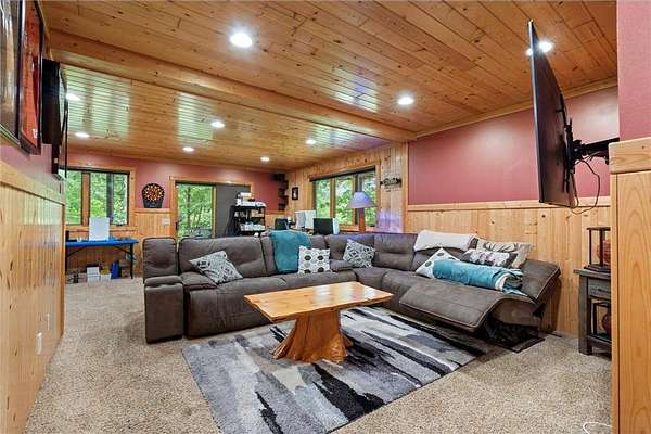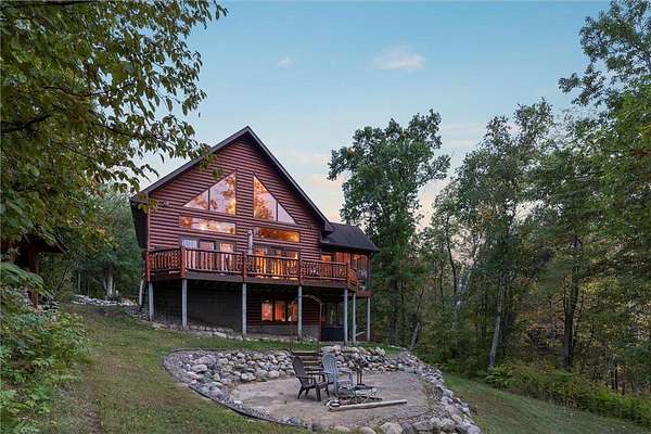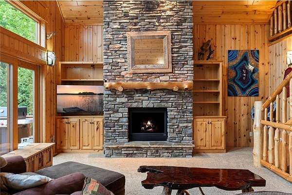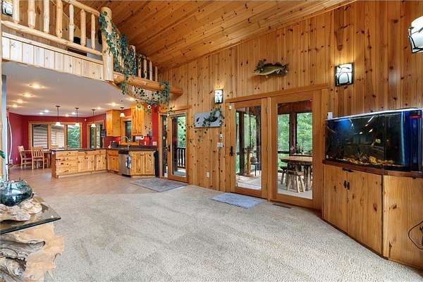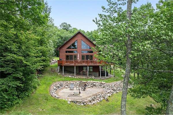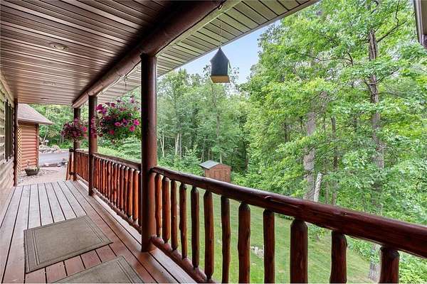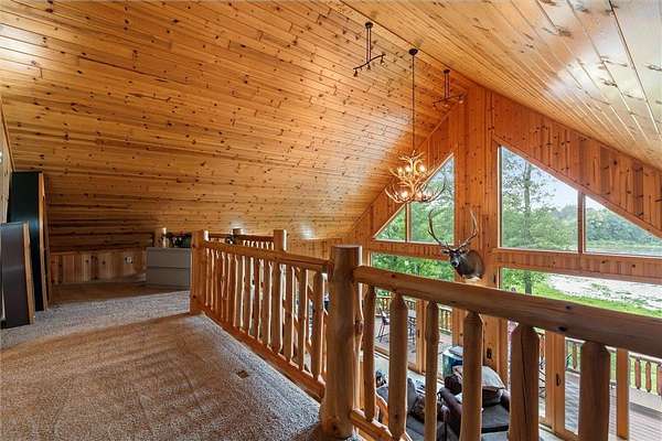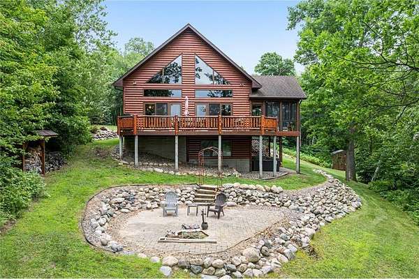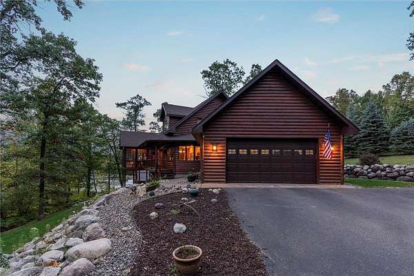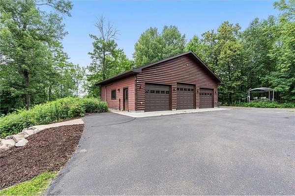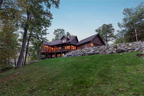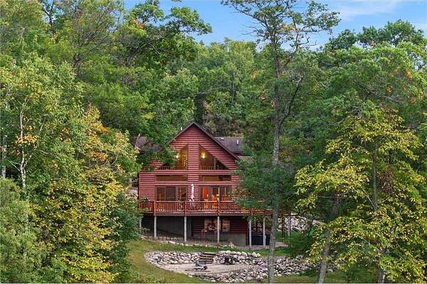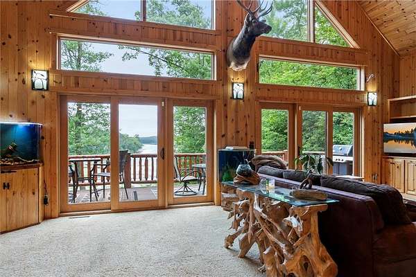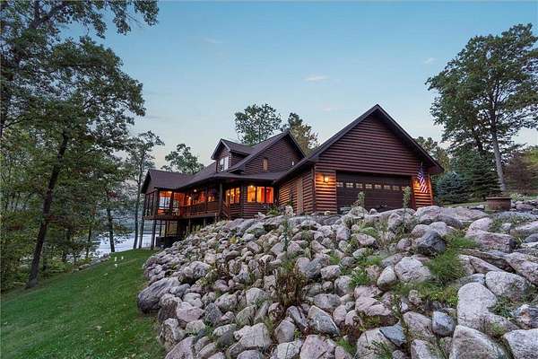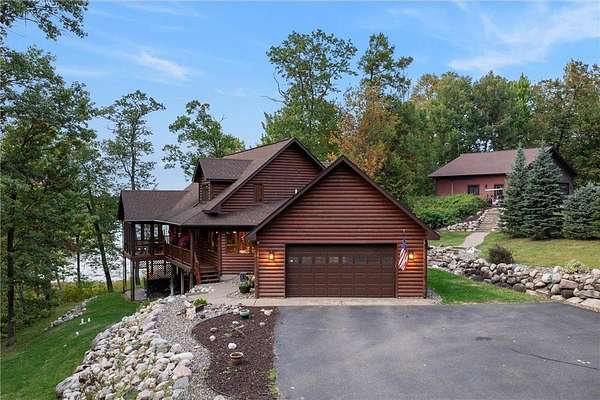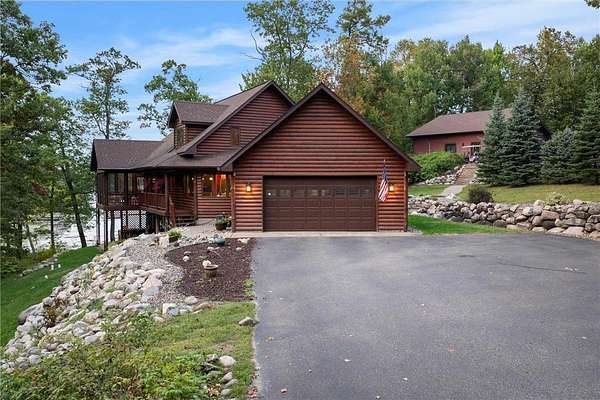 Experience the ultimate Up North getaway in this stunning 4-bedroom, 4-bath home boasting 261 feet of frontage on pristine Ox Lake. This home occupies a stunningly landscaped 1.97-acre lot filled with mature trees, providing the privacy you desire. With an entire acre of space between you and neighbors on both sides, you can truly enjoy your solitude. The log-sided residence commands attention with its vaulted knotty pine ceiling, striking log railings, and rich knotty pine accents. Gather around the impressive floor-to-ceiling stone fireplace and enjoy meals on the expansive lakeside deck, perfect for entertaining friends and family. With breathtaking lake views from a wall of windows, a sun porch, or the spacious loft area, this home brings the beauty of nature indoors. The kitchen features Silestone counters, stainless steel appliances, and custom knotty pine cabinetry, all complemented by an adjoining dining area. When you're ready to unwind, escape to the lakeside screened-in porch for some well-deserved relaxation. The main level primary bedroom suite is a true retreat, complete with a walk-in closet, whirlpool tub, and a beautifully tiled custom shower. Upstairs, you'll find two additional bedrooms, a full bathroom, and a loft area overlooking the magnificent living room and Ox Lake. The walkout lower level boasts a generous family room, ideal for cozy movie nights on rainy days. It also includes a bedroom, hobby room, full bathroom, laundry room with sink, and ample storage space. This property leaves nothing to be desired, featuring an attached 2-stall garage (24 x 24) and a detached 3-stall, temperature-controlled garage (30 x 40) with a workshop, ensuring that all your lake toys have a home. Experience breathtaking sunset views from the lakeside deck nearly every evening. Gather around the lakeside fire pit beneath the stars to witness the mesmerizing northern lights. Dive into unforgettable fishing and boating adventures on Ox Lake! The renowned Whitefish Chain awaits, just a quick 2-minute drive to Trout Lake boat access. Location matters, and you'll be minutes away from all of Crosslake's attractions, including diverse retail shops, great restaurants, premier golf courses, and scenic hiking and biking trails. Seize the opportunity to create unforgettable family memories right here on Ox Lake!