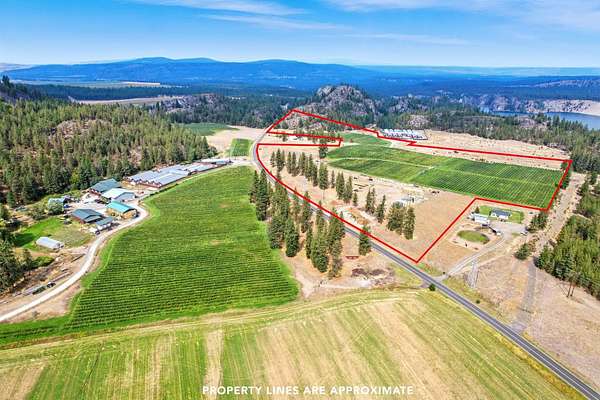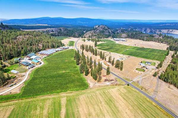 A rare offering in Eastern WA, Willow Wind Organic Farms encompasses 580+/- acres in 2 counties. In full production with highly coveted organic certification is 30+/- acres in blueberries along with 250+/- acres of alfalfa hay. Secure water rights supply farm-wide irrigation w/efficient & continuous operating systems. The farm is anchored by a complete processing facility featuring ample cold storage, temperature-controlled packing area, attached 105' x 72' living quarters, 100'x40' hay barn, 80'x80' machine shed, 54'x50' shop, possible fruit winery & tasting room, and extensive storage. Diversification includes U-pick blueberry operation + smaller plantings of apricots, cherries, blackberries, & lavender. Beyond current production, several parcels offer blueberry expansion and residential development potential, while views of Lake Spokane and surrounding mountains add long-term appeal. This is truly a premier agricultural investment with opportunity to scale & grow a legacy.