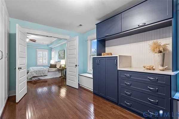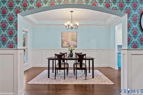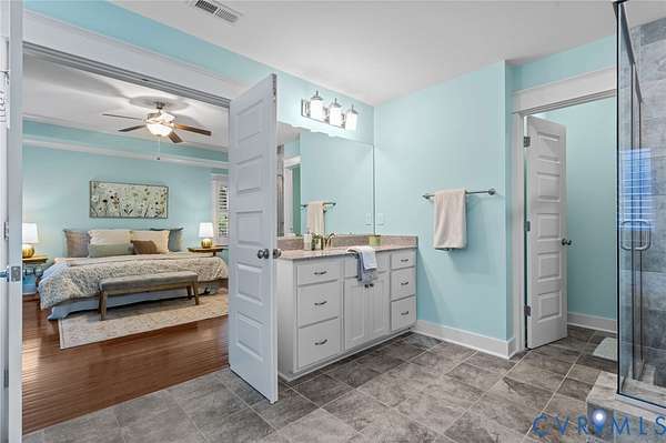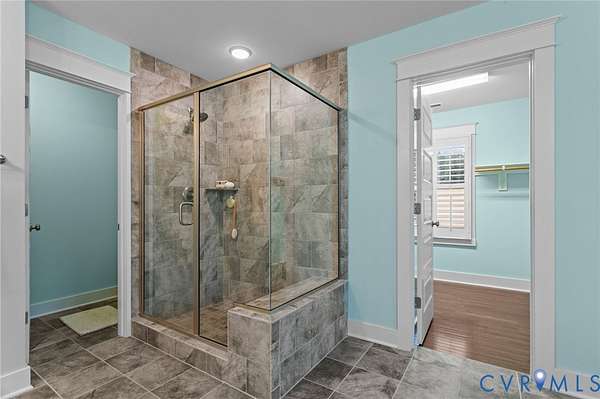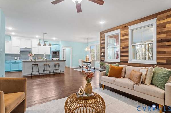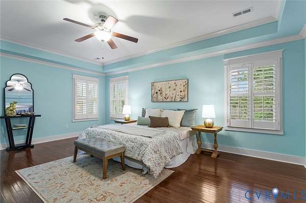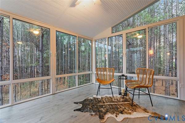 Exceptional 4 bedroom, 4.5 bath lakefront home offering 4,420 square feet on 2 private acres with stunning upgrades and custom features throughout. Enjoy year-round views from the additional 180 sq ft sunroom featuring highest-grade glass windows, or unwind on the blue slate stone patio complete with gas fire pit, outdoor lighting, speakers, and patio furniture that conveys. The front porch was redone with Trex decking in 2019, and the picturesque landscaping - including 12 cherry blossom trees in the front yard - is professionally maintained by Virginia Green with a full irrigation system. Inside, the home offers an additional primary suite on the main level plus a luxurious primary retreat featuring plantation-style shutters, double vanity, soaker tub, and a designer walk-in closet complete with built-in velvet-lined jewelry drawers, a dedicated gift wrapping station, and two cedar-lined window chest seats. Designer peel-and-stick wallpaper is thoughtfully featured in multiple spaces throughout the home, adding style and personality while offering flexibility. The kitchen is designed to impress with quartz countertops, an oversized island, new gas stovetop, and new dishwasher. New hardwood floors were installed upstairs in 2023. A Jack and Jill bathroom with dual vanities adds both convenience and functionality. Additional highlights include a gas fireplace, propane water heater, well water filtration system, septic pumped in 2024, two-zoned HVAC with two units, and Xfinity high-speed internet available. The Amish-built detached garage is a true standout, featuring one oversized door ideal for a boat or RV plus finished space on both the main and upper levels with two mini-split HVAC units, perfect for an office, gym, studio, or flex space. Tesla 48A charger conveys. Lake frontage, space, upgrades, and thoughtful design - this property truly has it all. Please note that some paint colors and finishes may appear brighter in photographs than they do in person.