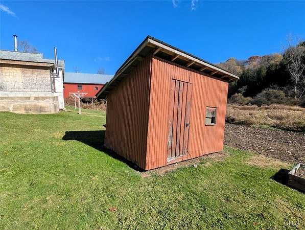 This Amish farm consists of a house, barn, large shop and stream on 13 acres located in Wellsville NY, Allegany County. Set along a quiet paved road in southern Allegany County, this 13-acre property offers a peaceful country setting with a nice blend of pasture and woods. A gravel drive leads you to the home which is surrounded by a large yard and garden area. Adjacent to the home is a spacious workshop built in 2017 currently utilized as a woodworking facility and offering endless potential for hobbies, storage, or small business use. Behind the home sits a classic two-story post and beam barn suitable for livestock, and open pastureland surrounding it. The year-round stream running through the property provides a reliable water source for livestock and adds to the natural beauty of the setting. Across the stream are approximately 5 acres of woodland ideal for hunting, recreation, or harvesting firewood. The two-story farmhouse includes a large bedroom on the main floor and three additional bedrooms upstairs. A functional addition on a poured concrete foundation currently serves as a washroom. The spacious kitchen offers plenty of room to remodel and customize to your liking. The home is heated with wood stoves, and electricity is available at the road, making this an ideal candidate for anyone looking to convert the property back to conventional utilities. A great opportunity to establish a small farmstead or rural homestead of your own. Enjoy the quiet surroundings, flowing stream, open land, and functional outbuildings in a private country setting. All rights owned by the seller will transfer.