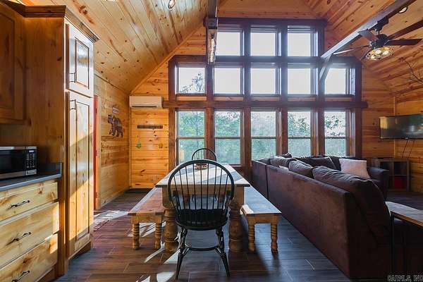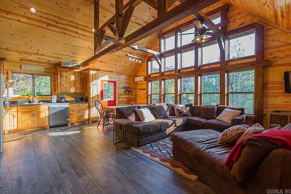 Two fully furnished cabins located in the Ouachita Mountains. These turn-key vacation cabins have been operating as a successful rental business for over 7 years. The Hilltop Cabin has a new coat of stain on the exterior, newly finished floor, and the kitchen cabinets have been painted. The Hideaway Cabin has a new coat of exterior stain. Both cabins are located close to the ATV trails, swimming holes and many recreational activities. Both cabins have National Forest boundary, mountain views and a year-round creek! One cabin was built in 2012, and has 3 bedrooms, 2 baths, and big windows for amazing views. The second cabin was built in 2017 and also has 3 bedrooms and 2 baths. Rustic interiors with lots of charm make these feel like home. You could even purchase this for two families as private residences with astounding views from the decks. If you want to operate these as a vacation rental business, the bookings are plenty and the business comes with a fully functional web site that will transfer to the new owners. All signage and logos are also included. Don't miss this opportunity to by a slice of the Ouachita Mountains! Potential to purchase the two cabins separately, too!