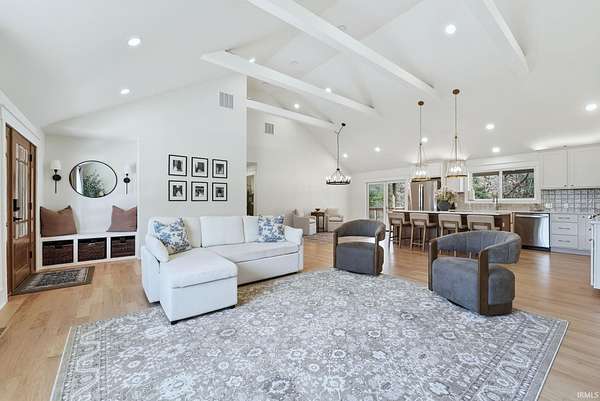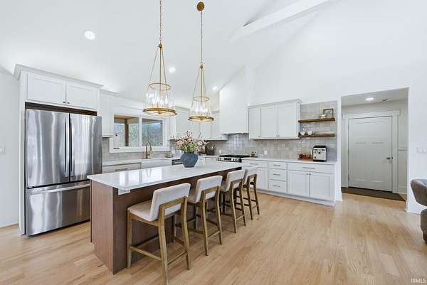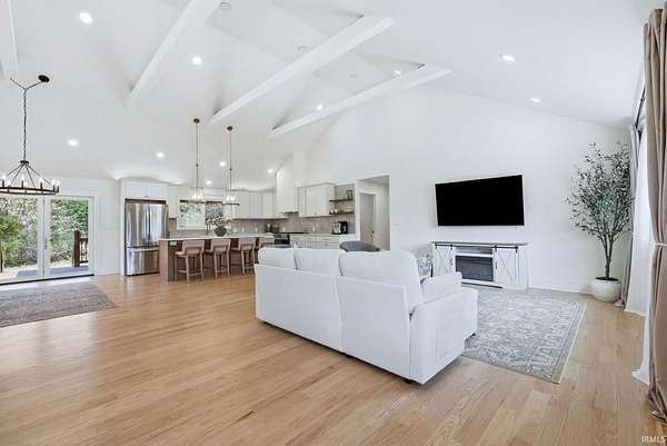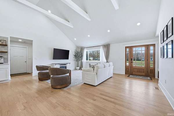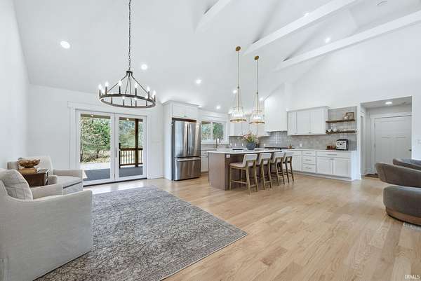 Beautifully crafted custom-built ranch that truly checks all the boxes. From the moment you step inside, you’ll be welcomed by an open-concept layout featuring stunning hardwood floors throughout and soaring cathedral ceilings that create a bright and inviting space. Natural light fills the home, enhancing every detail. The kitchen is a standout with a sprawling 8-foot island, granite countertops, and beautifully designed cabinetry, all flowing seamlessly into a spacious dining area, perfect for both everyday living and entertaining. This home offers three generously sized bedrooms, including a primary suite complete with not one, but two walk-in closets. Both full bathrooms feature clean, modern tile finishes, with one offering an oversized walk-in shower and the other a tub for added versatility. An attached two-car garage provides convenience, while the exterior offers just under 2.3 acres with a partially wooded setting, giving you the perfect blend of space and privacy. Step outside to enjoy the covered back deck, perfect for summer barbecues, relaxing evenings, and taking in the peaceful surroundings. This home offers the feel of new construction without the wait, don’t miss your opportunity to make it yours.