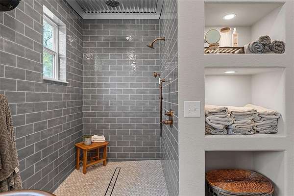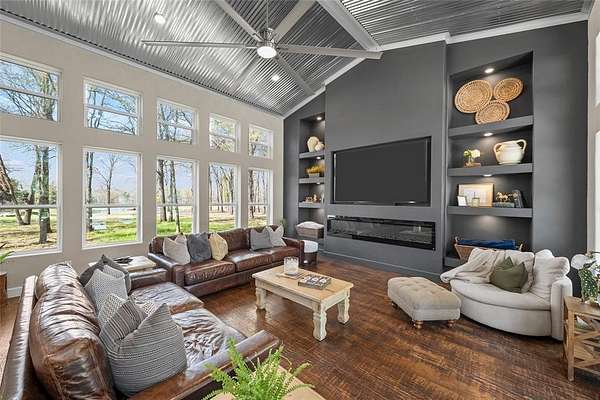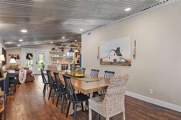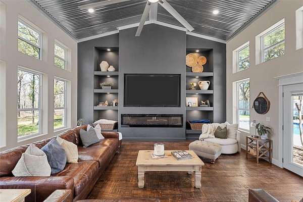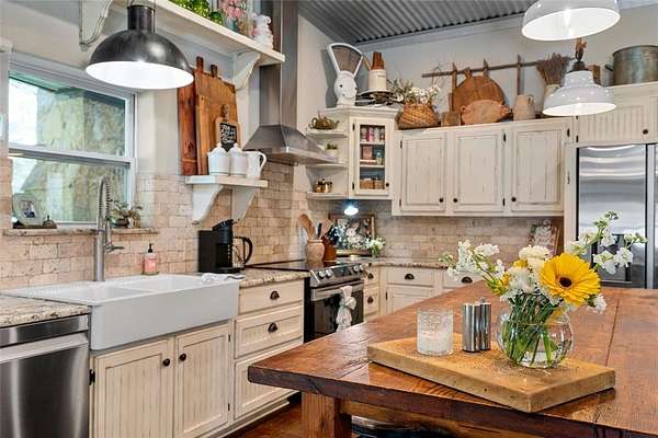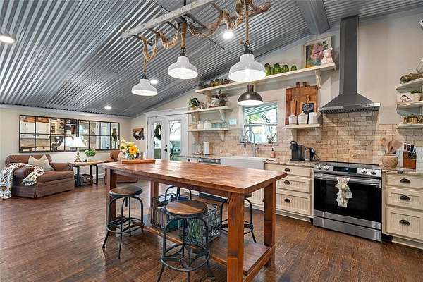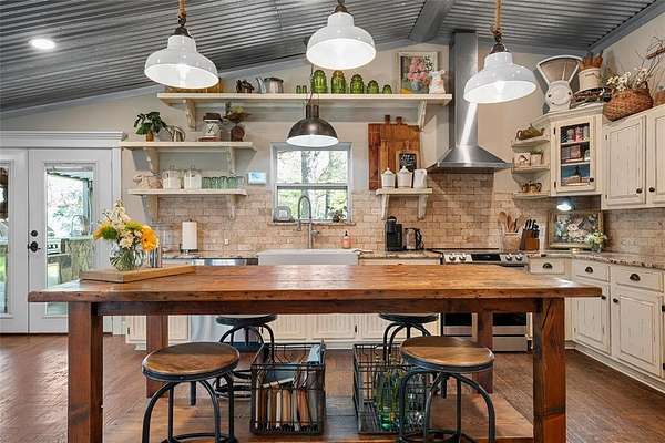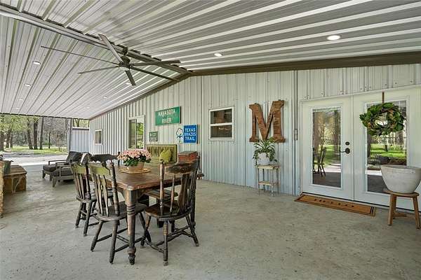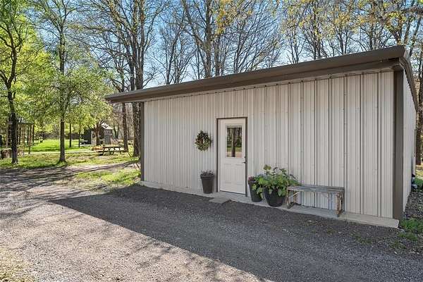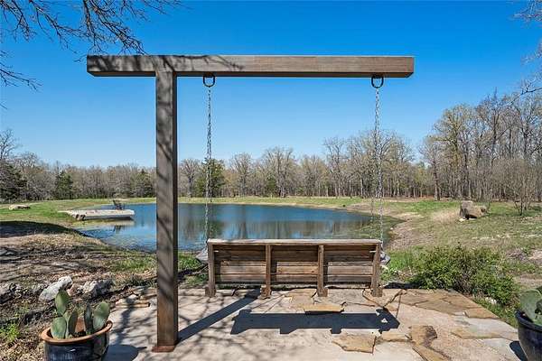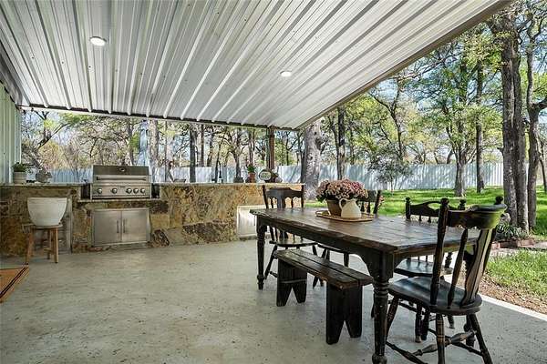 Escape to your own private sanctuary with this beautifully designed custom built home with exceptional outdoor living. This 2bedroom, 2bath home offers 2,300+ sq ft of living space. Nestled on 20 pristine wooded acres along a quiet dead-end road, the property blends peaceful country living with modern comfort and thoughtful design. Inside you will find a spacious, light-filled living area that creates the perfect gathering space, featuring an oversized TV & media wall which has open access to the pool & patio. Large windows invite natural light in while showcasing the scenic surroundings. The dining area easily accommodates both intimate meals and larger gatherings. The kitchen is both functional and inviting, complete with granite countertops, a large farmhouse sink, custom cabinetry & all-electric appliances. Just off the kitchen is a flex space offering versatility for a home office, playroom or hobby area. The primary suite serves as a serene escape featuring a spa-like bathroom with a custom tiled walk-in shower and beautiful freestanding copper soaking tub. The home is fully sprayfoamed and has top grade hard wood flooring throughout. Outdoor living is a highlight, with a covered patio that includes a full outdoor kitchen, comfortable seating, and a striking rock fireplace ideal for entertaining year-round. The land offers a natural, park-like setting with mature hardwood trees, walking trails and a stock tank with a unique custom designed pier for fishing, soaking up nature or just a place for quiet reflection. With ample area to expand or build, the acreage provides endless possibilities. Additional features include a vintage-style greenhouse, chicken coop, metal shop with attached carport and a separate metal building currently used as a salon perfect for a business, studio, or creative space. This unique property combines privacy, charm & versatility and offers the perfect setting for those seeking space and serenity. Groesbeck ISD. 2.5 miles to Lake Mexia