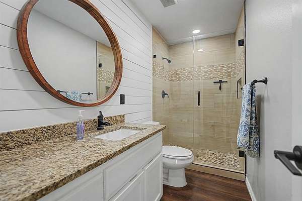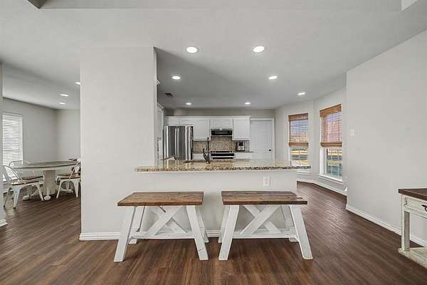 Enjoy peaceful country living in this ranch-style farmhouse, just a short drive from the city -- and NO HOA! With easy access to I-30 and Highway 66, this property offers the perfect balance of rural charm and everyday convenience. Located in the highly sought-after Caddo Mills ISD, this well-maintained 3-bedroom, 2-bathroom home is a must-see. Step inside to an inviting open-concept living, dining, and kitchen area featuring newly installed luxury vinyl plank flooring throughout, ideal for both entertaining and everyday living. The spacious kitchen boasts white cabinetry, granite countertops, and recently replaced stainless steel appliances. A formal dining room provides flexible space that can easily be customized as a home office, playroom, or secondary living area. The primary suite is generously sized, and the fully renovated primary bathroom offers a spa-like retreat with a walk-in shower and a new freestanding soaking tub.