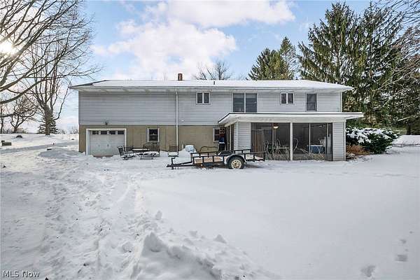 Welcome to this charming 3-bedroom, 2-bath home set on 3.26 acres in a peaceful rural setting. Enjoy the warmth and extra living space of a fully finished basement featuring a cozy wood-burning stove. The main bathroom has been recently updated with a modern walk-in shower, and the spacious kitchen offers plenty of room for cooking, gathering, and entertaining. A welcoming front porch added in 2022 provides the perfect spot to relax and take in the surrounding countryside. The property features two attached garages plus an additional oversized lower-level garage, offering ample space for vehicles, storage, or a workshop. With a private septic system and room to spread out, this home offers comfort, functionality, and the tranquility of country living.
