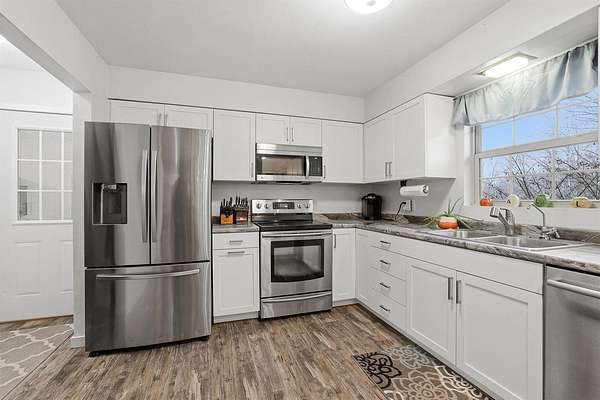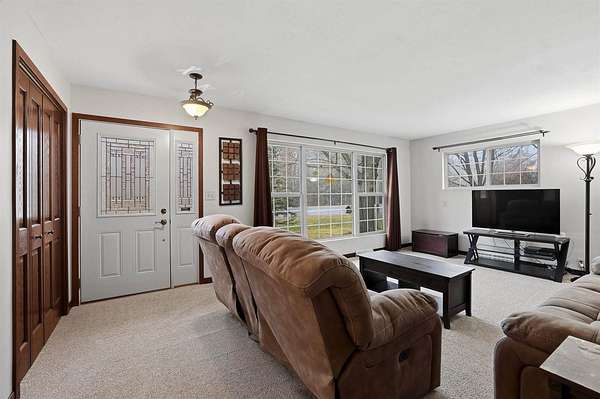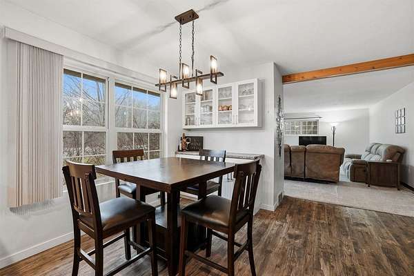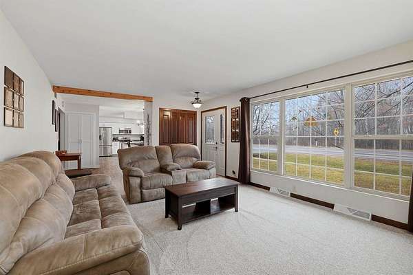 Est $1,923/moNicely updated 4-bedroom, 2-bath home nestled on 1.95 acres of privacy with mature trees and room to roam. The exterior offers a spacious yard, a detached outbuilding for storage or hobbies, and a stunning stamped concrete patio ideal for outdoor gatherings. Inside, you will find an inviting layout filled with natural light, an updated kitchen with modern finishes, and brand-new carpet throughout the home. The lower level is a great extension of the living space, featuring a warm and welcoming family room with a pellet stove, perfect for Wisconsin winters. You will also find a dedicated exercise room along with generous storage options. This property blends comfort, updates, and acreage-making it a wonderful place to call home.