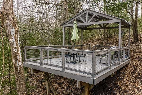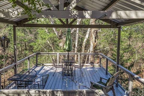 Enjoy peaceful living in a casual Texas farmhouse with bucolic view and rolling hills. Relax on the tree house deck as the live creek babbles 20 feet below, or stretch out in a hammock on the lower deck as it cantilevers over the fishing hole. The oversized covered back porch is the perfect place for lounging or entertaining. This jewel is hidden from the road, providing privacy and over 28 acres to roam. The 8 acre woods feel like a national park area with a large variety of old growth trees, ravines, stone outcroppings, teaming with diverse flora and fauna to explore. The property meanders along the creek for about ? mile, providing many places to linger, fish, or just enjoy the sound of the birds. Featured by many national magazines, the blog Cedar Hill Farmhouse, and the book, French Accents, this charming 2/2 features an open concept living area, with a whole house generator. Perfect for weekend getaways, or live here while you build your dream home.